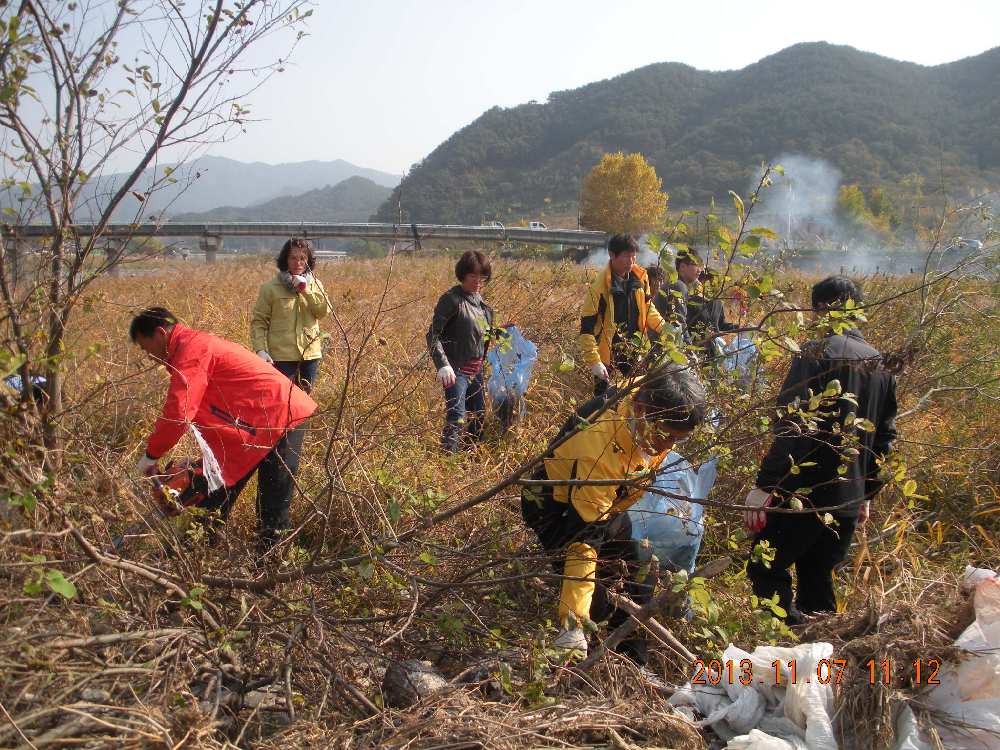 - 7일 동계면 주민자치위원 30여명은 여름 내 낚시꾼들이 버리고 간 오물들을 수거하고 폭우에 흘러 내려온 비닐과 생활쓰레기를 줍고 이물질이 가득 걸려있는 잡목을 제거하는 등 소재지 주변의 오수천을 말끔하게 청소하는데 온 힘을 쏟았다. -2013. 11. 7-