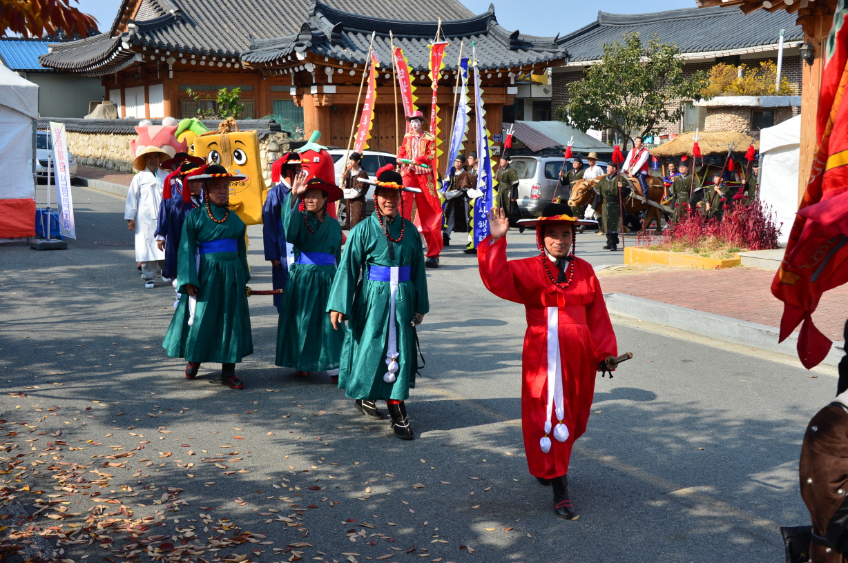 - 제8회 순창장류축제가 한창인 순창전통고추장민속마을에서는 1일 장류축제의 꽃이라 할 수 있는 순창고추장임금님 진상행렬이 펼쳐져 관광객들의 시선을 사로잡았다. 32명으로 구성된 옥천고을취타대를 시작으로 황숙주 군수, 최영일 군의장, 사또, 포졸에 이어 임금님께 진상할 순창고추장을 이끄는 우마차와 금과들소리보존회, 지역주민, 관광객들이 뒤를 이은 행렬은 가히 장관을 연출했다. 특히, 이를 지켜보던 지역주민과 관광객들은 누가 먼저랄 것도 없이 임금님 진상행렬의 뒤를 따라 축제장인 민속마을 일원을 순회하는데 동참해 축제의 멋과 볼거리를 한층 더 풍성하게 만들었다. -2013. 11. 1-