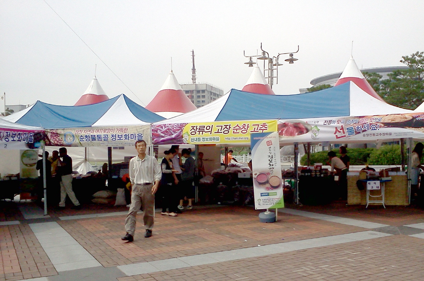 - 도내 정보화마을의 우수 농특산물 판매와 홍보의 장을 위해 13일부터 15일까지 전북도청 의회광장에서 마련된 ‘2013 추석맞이 직거래장터’에 순창군 정보화마을 3곳이 참여해 청정 순창의 농특산물을 널리 알렸다. 순창전통고추장마을과 구림물통골, 쌍치 산내들마을 등 3개 마을이 참여해 순창의 웰빙농특산물을 전시 판매하고 시중가보다 20~30% 할인된 가격으로 판매했다. 다. -2013. 9. 16-