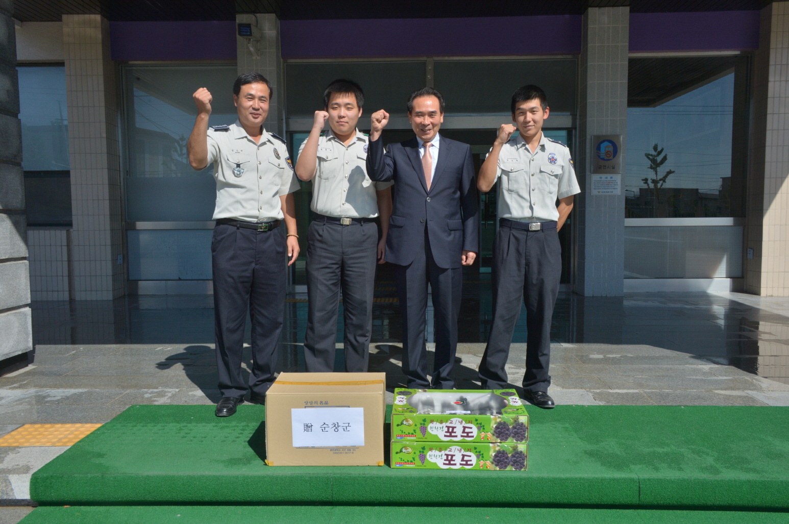 - 황숙주 순창군수는 16일 추석명절을 맞아 경찰서 의경들을 찾아 위문품을 전달하며 노고를 치하하고, 관내 복지시설인 옥천요양원과 순창군 노인전문요양원을 잇따라 방문하여 훈훈한 온정을 전했다. -2013. 9. 16-
