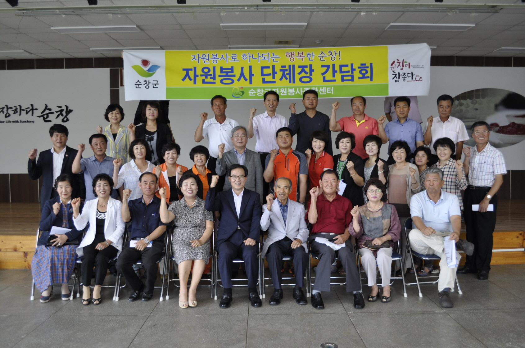 - 순창군자원봉사센터(소장 김영주)는 27일 순창읍사무소 2층 회의실에서 센터 등록 자원봉사단체 관계자 35명이 참석한 가운데 하반기 자원봉사 단체장 간담회를 가졌다. 이날 간담회에서 관내 자원봉사센터 및 단체간 유기적인 협력.지원으로 순창군의 자원봉사활성화를 위한 상.하반기 추진사업 실적보고와 자원봉사 현안업무 등을 논의했다. -2013. 8. 27-
