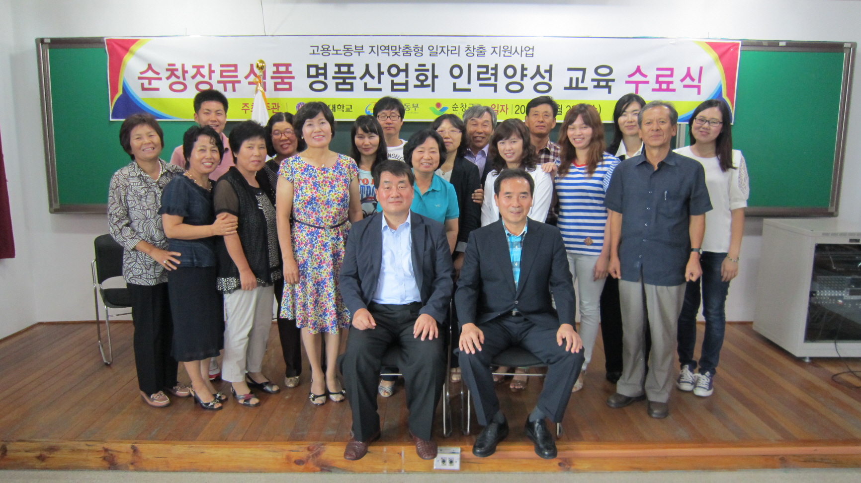 - 고용노동부에서 주관하는 지역맞춤형 일자리창출 지원사업으로 추진된 ‘순창장류식품 명품산업화 인력양성교육’ 수료식이 28일 전북대학교 순창분원에서 열렸다. 올해로 3회째를 맞는 지역맞춤형 일자리창출 교육은 지난 5월 전북대학교 산학협력단과 협약식을 체결하고, 교육생을 모집해 지난 7월 5일부터 75시간의 교육과정을 거쳐 17명의 수료생을 배출했다. -2013. 8. 28-