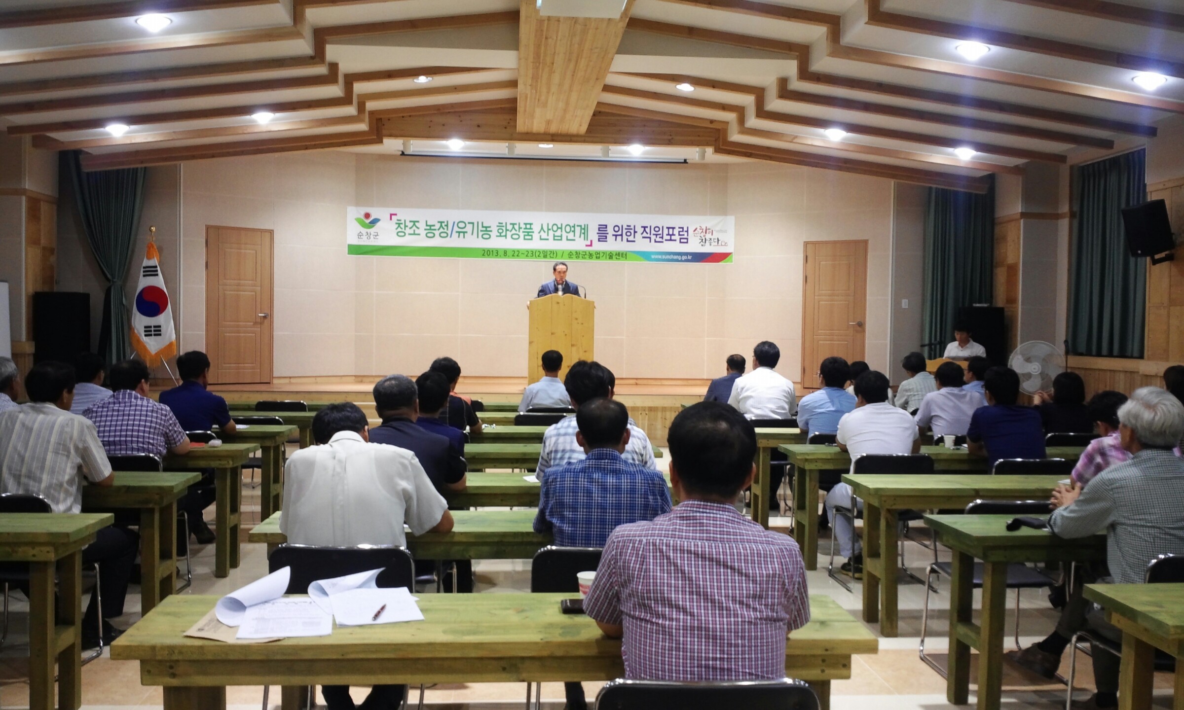 - 통합조직된 순창군의 농업조직인 농업기술센터(소장 이구연)가 새출발을 다지는 의미로 22일 저녁부터 다음날 아침까지 직원들의 화합과 혁심마인드 함양을 위해 포럼을 열었다. 포럼은 순창군 농업기술센터 친환경농업과와 농업기술과 직원 50명이 참석해 전남 곡성군 강빛마을 교육관에서 유기농화장품 산업과 연계한 새로운 농정시책 창조방안을 모색했다. -2013. 8. 22-