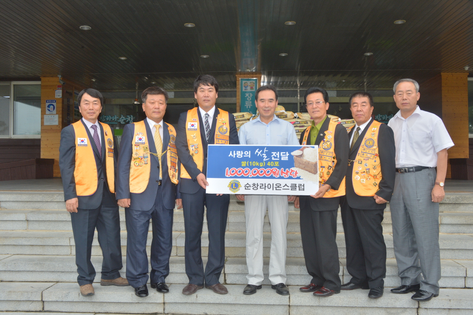 - 순창라이온스클럽(회장 나현주)는 30일 지난18일 신구회장 이취임식때 경비를 절약하여 모은 100만원으로 10㎏ 쌀 40포대를 구입하여 불우한 이웃들에게 써달라며 순창군청을 방문하여 황숙주 순창군수를 찾아 전달했다. -2013. 7. 30-