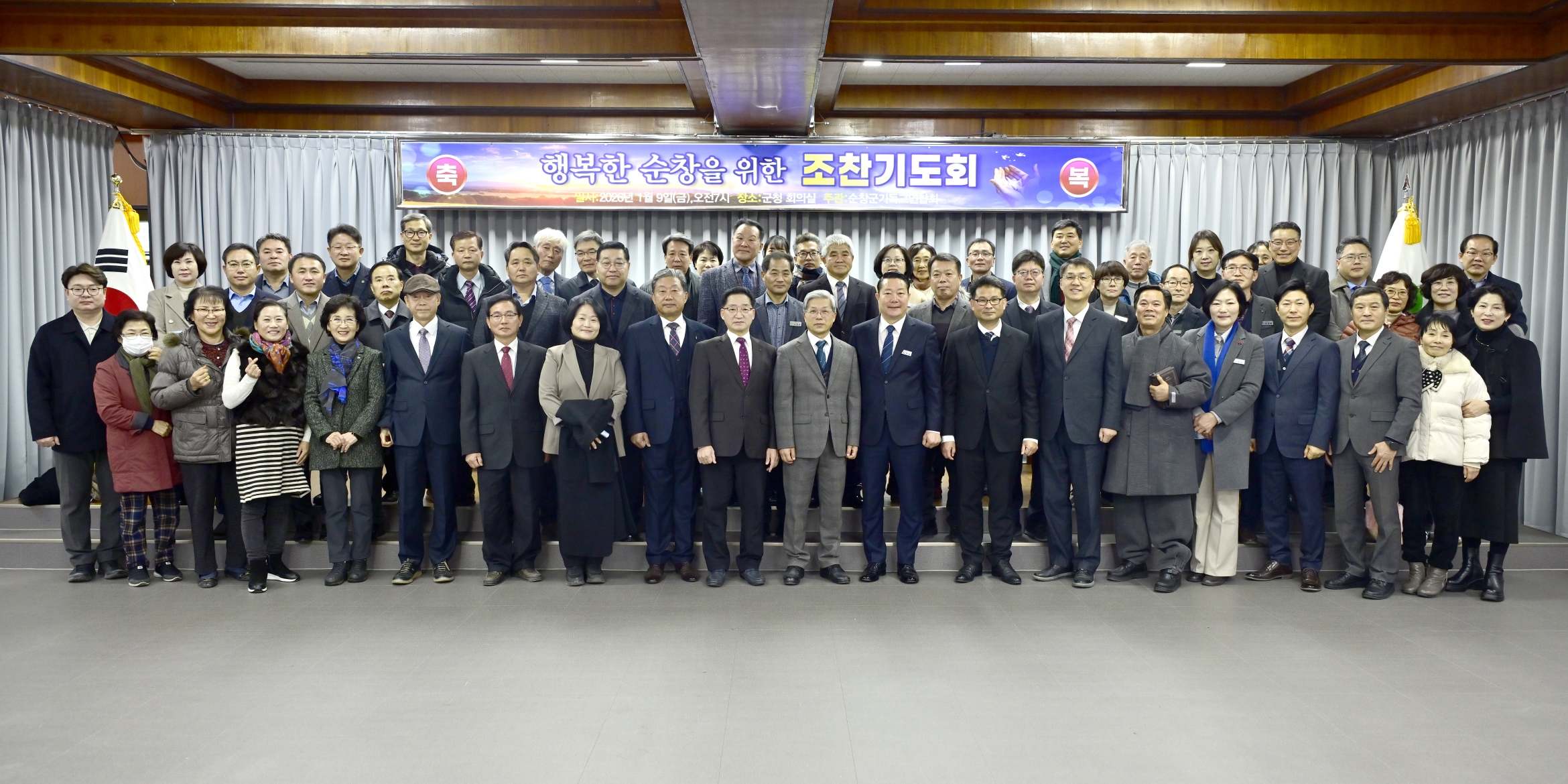 - 순창군기독교연합회(회장 강형규 목사, 순창제일교회)는 2026년 새해를 맞아 9일 순창군청 3층 회의실에서‘순창군 발전과 군민 안녕을 위한 조찬기도회’를 개최했다.