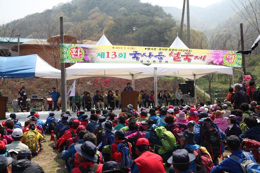 - 제13회 국사봉철쭉제가 4일 쌍치면 종암리 터실마을 광장에서 1300여명이 참석한 가운데 풍물놀이 등 식전행사와 기념식, 등반, 각설이 공연, 즉석 노래자랑 등 다채로운 프로그램으로 화려하게 펼쳐졌다. -2013. 5. 6-