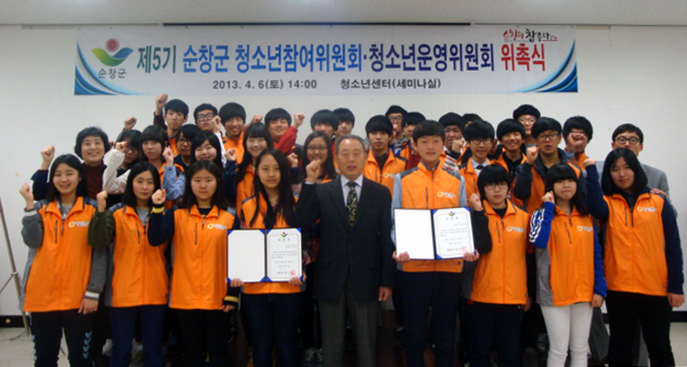 - 순창군은6일 청소년센터에서 제5기 순창군 청소년참여위원회 15명과 청소년운영위원회 20명에 대한 위촉식을 가졌다. 이번 위촉식을 시작으로 위원회에서는 순창군 청소년관련 정책과 사업에 대한 의견제시, 자문 평가, 청소년센터 기능 유지를 위한 모니터링 및 프로그램에 대한 자문 등 다양한 활동을 하게 된다. -2013. 4. 8-