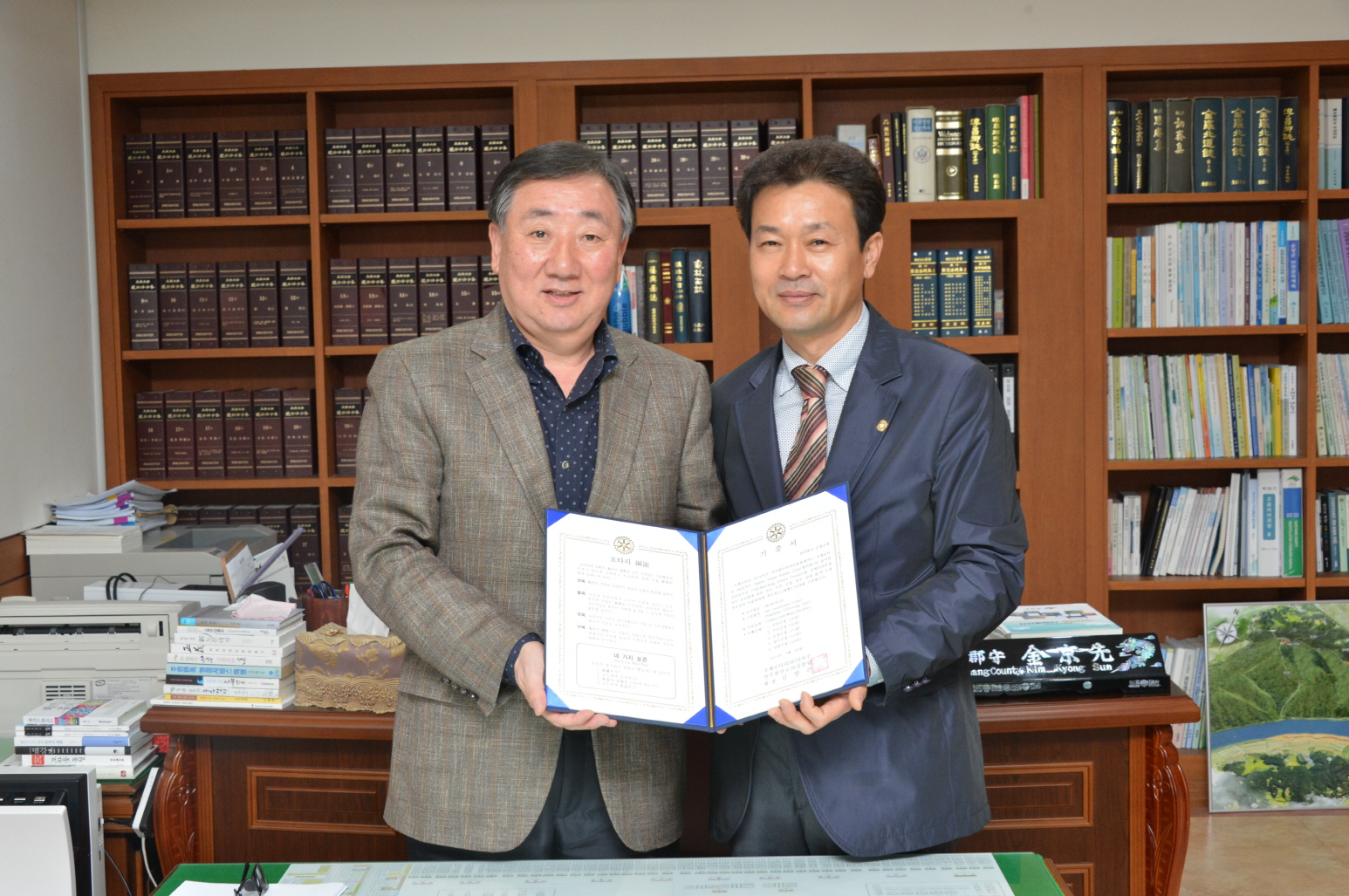 - 국제로타리 3670지구 전주완산로타리클럽 김양곤 회장과 회원이 20일 순창군청을 방문해 황숙주 순창군수에게 관내 읍면소재 경로당 11개소에 에어컨 11대(1200만원 상당)를 기증하는 기증서를 전달했다. -2013. 3. 20-