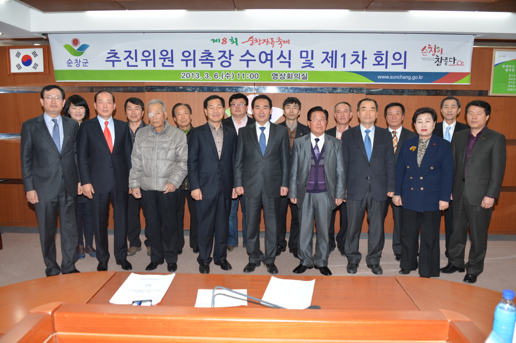 - 순창장류축제추진위원회(위원장 김기곤)는 6일 군청 영상회의실에서 제8회 순창장류축제 제1차 추진회의를 열었다. 이날 회의에서는 추진위원에 대한 위촉장 수여와 함께 김기곤 위원을 위원장으로 선출했다. -2013. 3. 6-