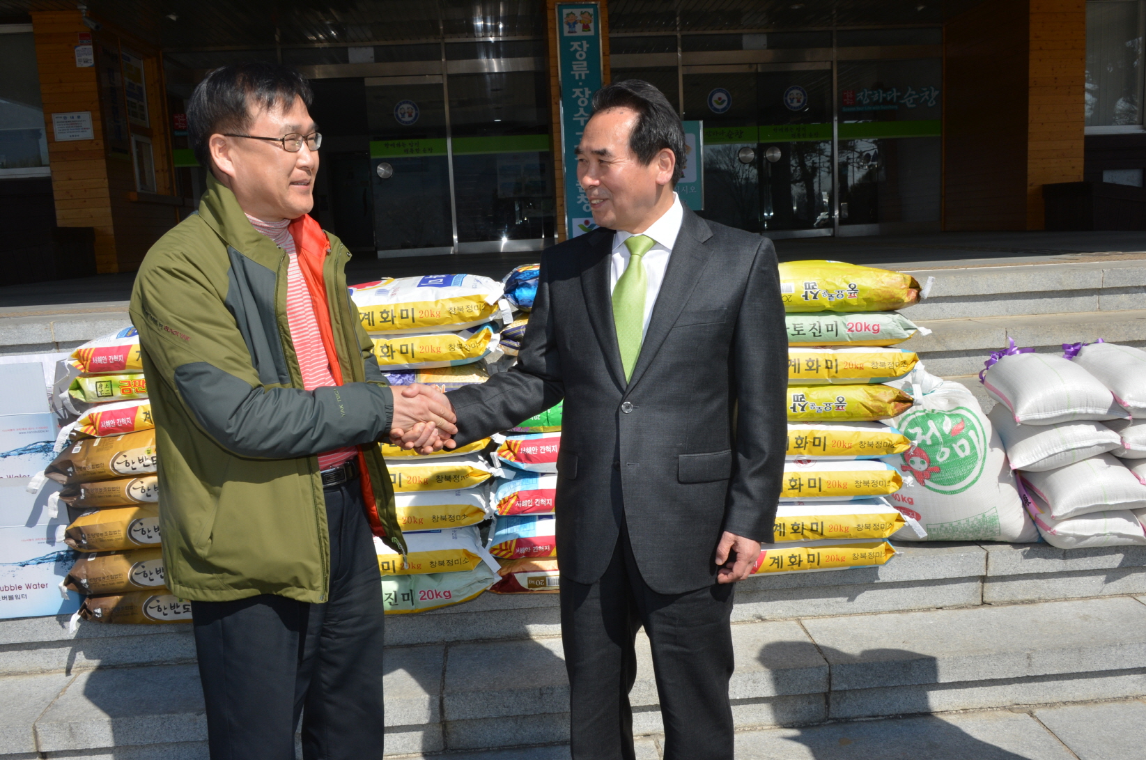 - (유)인터하이텔 (대표 황의옥)은 8일 점포 개업식때 화환대신 기증품을 받은 쌀 38포대(20㎏ 200만원상당)를 불우한 이웃들에게 써달라며 11일 순창군청을 방문하여 황숙주 순창군수를 찾아 전달했다. -2013. 3. 8-