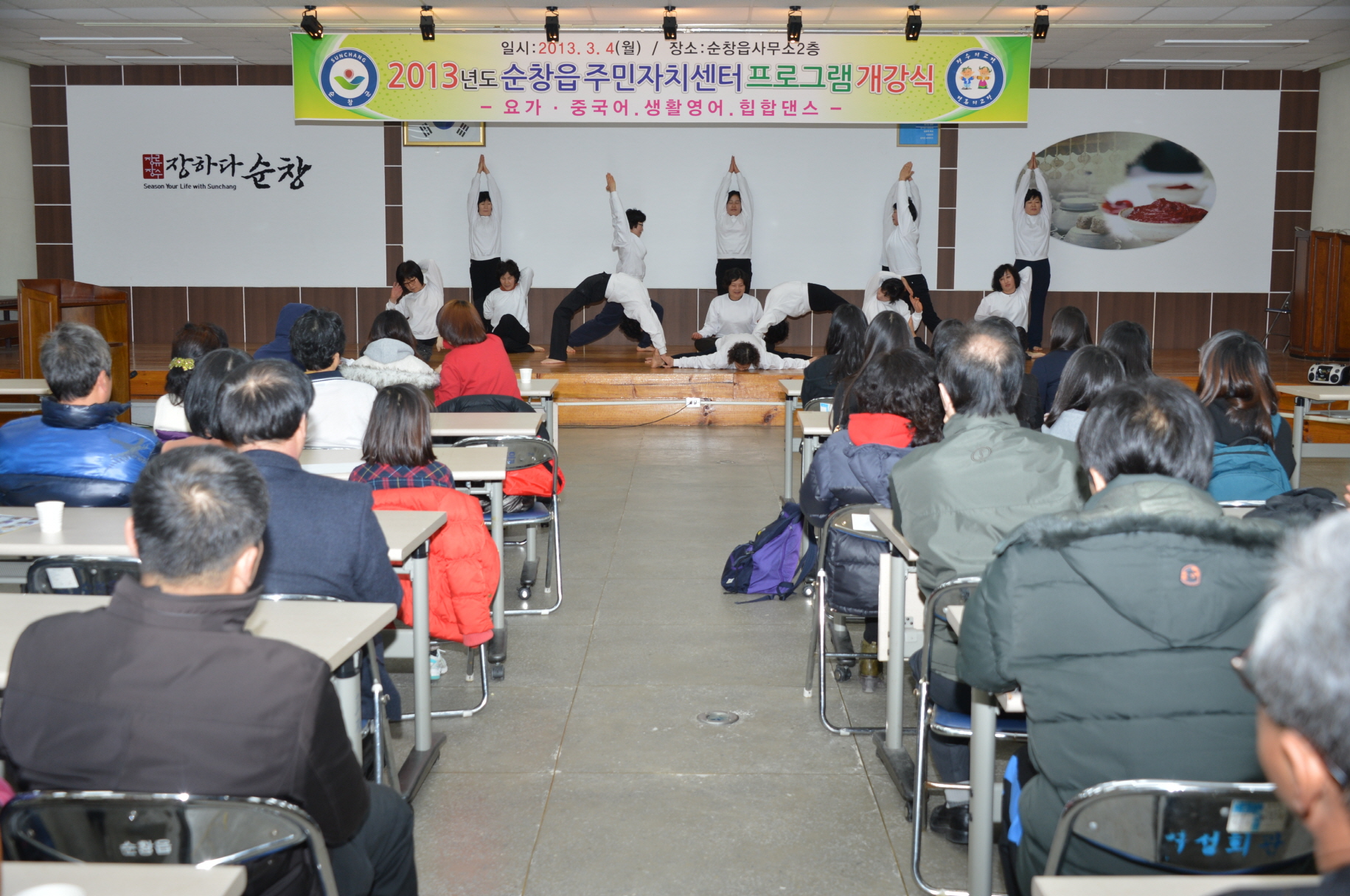 - 순창읍 주민들에게 다양한 배움의 기회를 제공하고 있는 순창읍 주민자치센터가 4일 주민자치위원과 수강생 등 100여명이 참석한 가운데 순창읍사무소 대회의실에서 주민자치센터 프로그램 개강식을 가졌다. -2013. 3. 4-