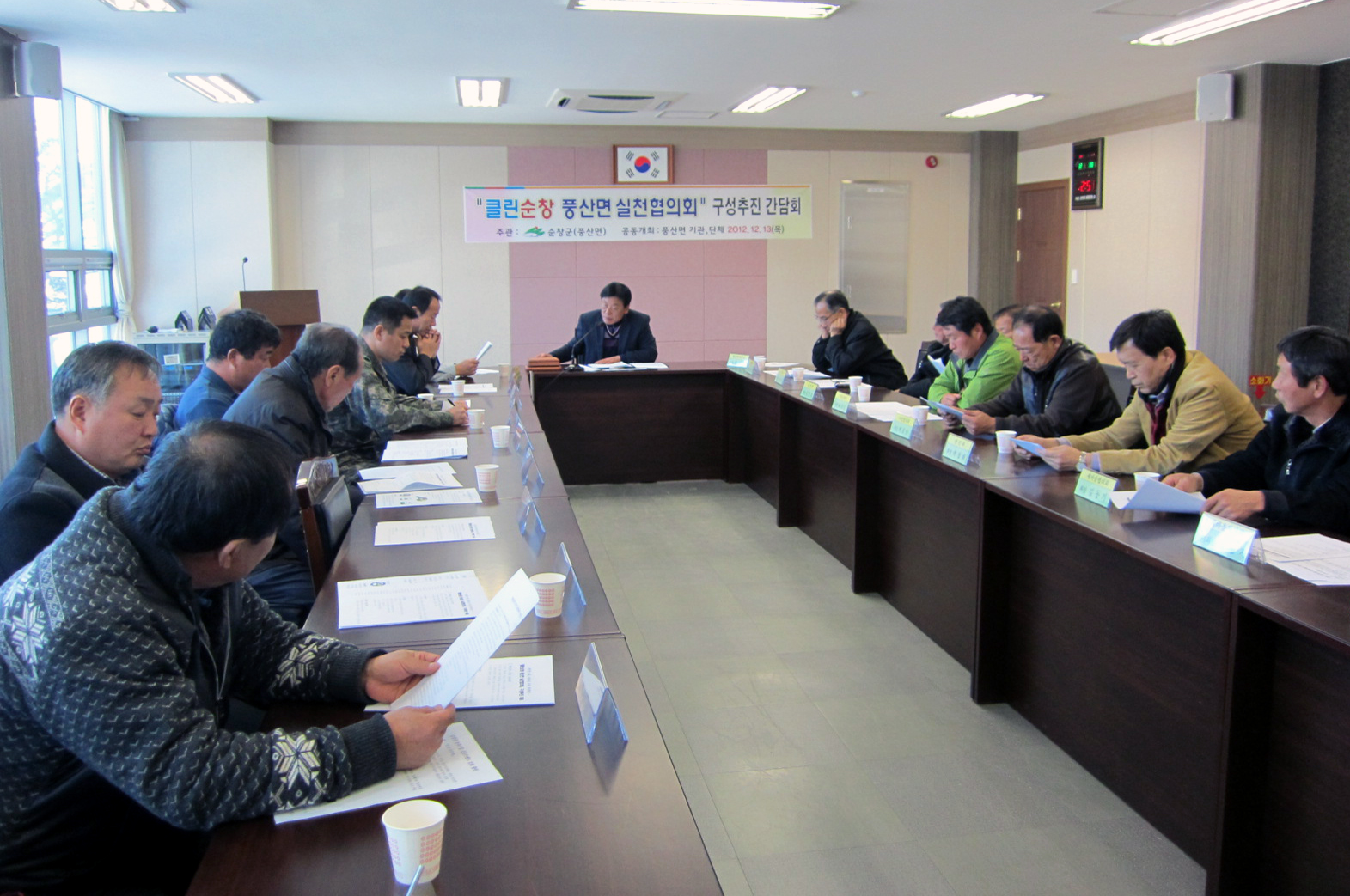 - 순창군이 2013년도 새로운 군정 비전으로 ‘클린순창 만들기’ 운동을 전개하기로 방침을 정한 가운데, 풍산면에서도 본격 나섰다. 13일 풍산면 각급 기관 및 사회단체 대표가 면사무소 회의실에서 간담회를 갖고 ‘클린순창 풍산면 실천협의회’를 구성하고 적극 활동키로 다짐했다. 이날‘클린순창 풍산면 실천협의회’ 운영규정을 마련하고 규정에 따라 설제훈 풍산면장과 백종만 이장협의회장을 당연직 회장과 부회장으로 각각 선출했다. -2012. 12. 13-