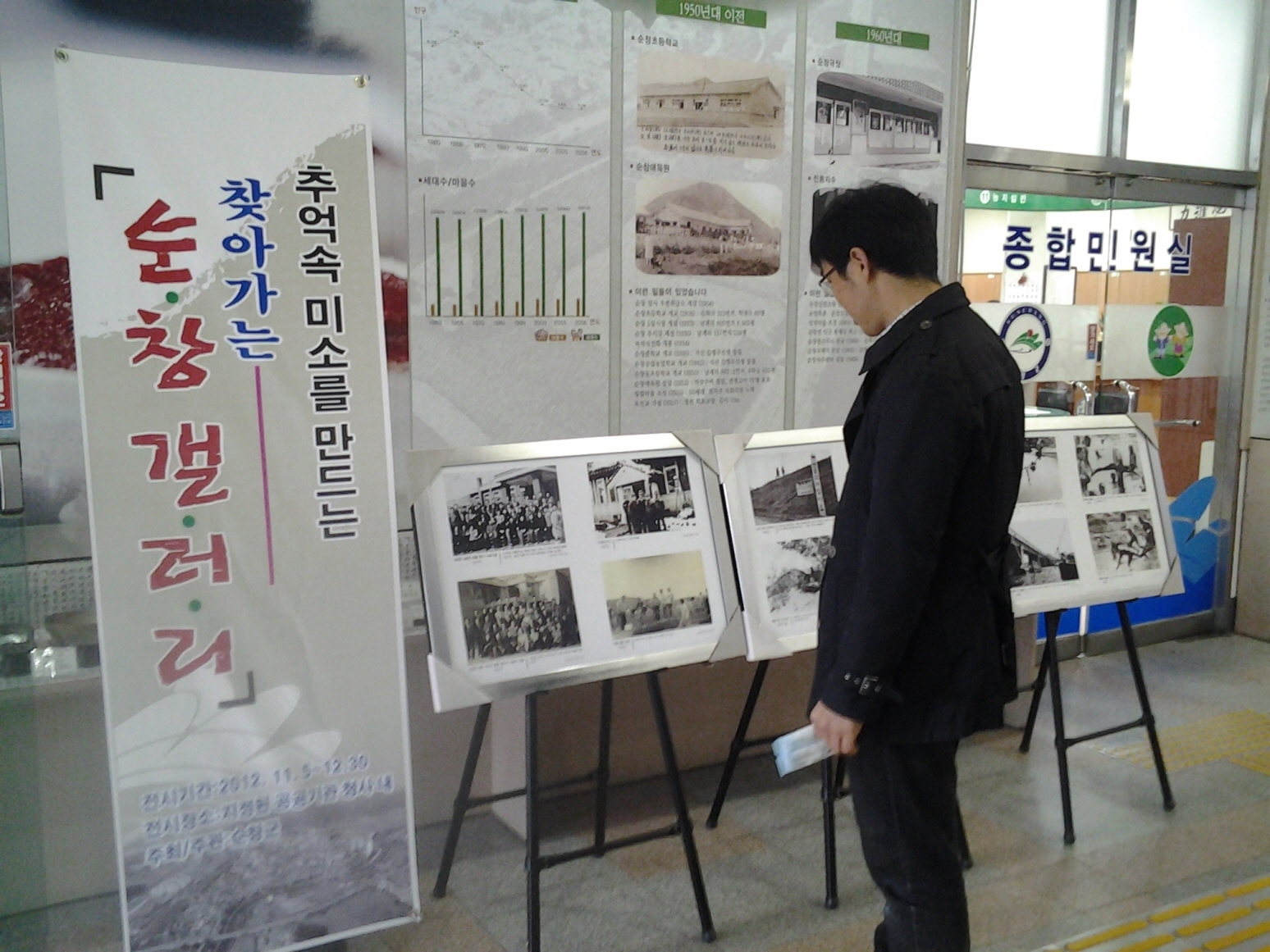 - 순창군이 공공기관의 작은 공간을 활용해 문화예술작품을 전시하는 ‘찾아가는 순창 갤러리’를 운영해 높은 호응을 얻고 있다. 군은 지역주민과 순창을 방문하는 관광객들에게 문화예술작품 전시로 볼거리를 제공함으로써 순창의 아름다운 이미지를 높이기 위해 이같이 추진한다. 5일부터 오는 12월 말까지 군청과 11개 읍면사무소, 교육청 등 다중집합 공공기관 등에서 추억의 사진전을 시작으로 가죽공예, 한지공예, 시화, 사군자와 같은 문화예술단체 회원들의 우수작품을 기획 전시할 예정이다. -2012. 11. 7-
