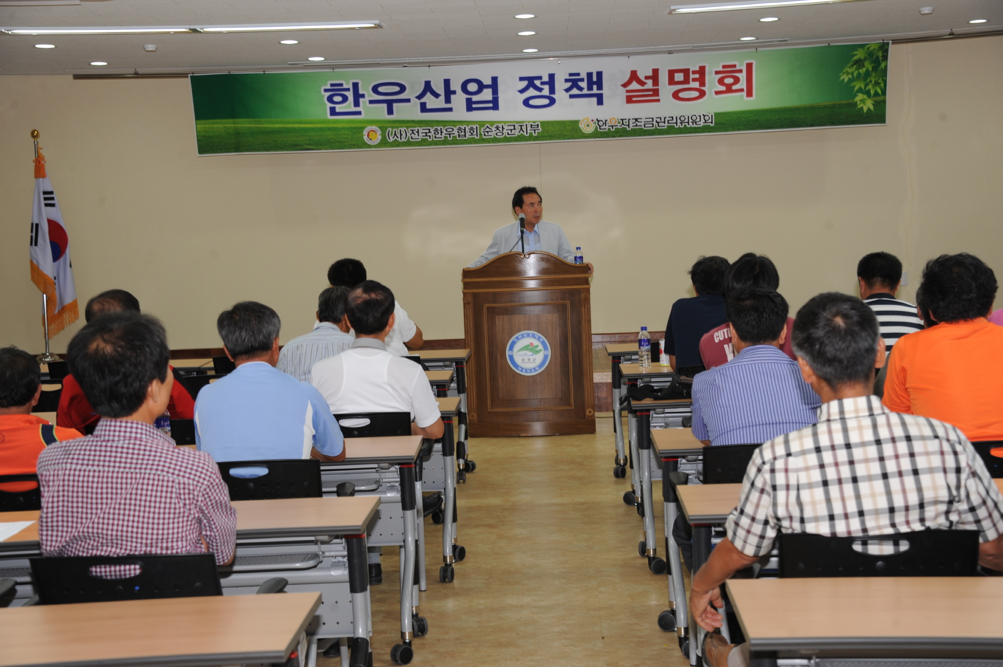 - 전국 한우협회 순창군지회(회장 이성연)는 9일 순창군 농업기술센터에서 황숙주 군수, 관계공문원 등이 참석한 가운데 한우농가 100여명을 초청하여 한우산업관련 정책 설명회를 가졌다. 순창군 축정담당의 축산업 허가제와 가축분뇨의 관리 및 이용에 관한 법률 개정안 설명에 이어 전북도지회 임용현 지부장의 축산업 허가게 시행에 따른 문제점 및 대책에 대한 설명을 청취한 후 농가들의 질의 응답 시간으로 진행됐다. -2012. 8. 9-