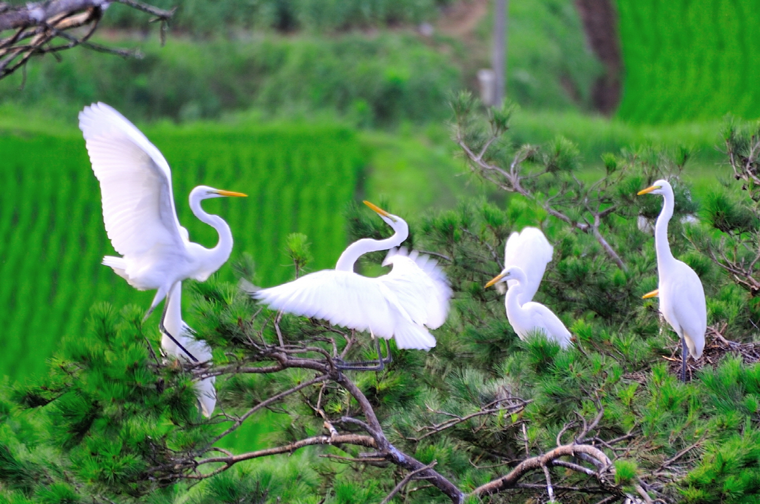 - 중대백로 홀로서기 날개짓 순창군 순창읍 무수마을 앞산에 서식하는 중대백로 무리가 아름다운 자태를 뽐내면서 연신 날개짓으로 홀로서기를 하고 있다.