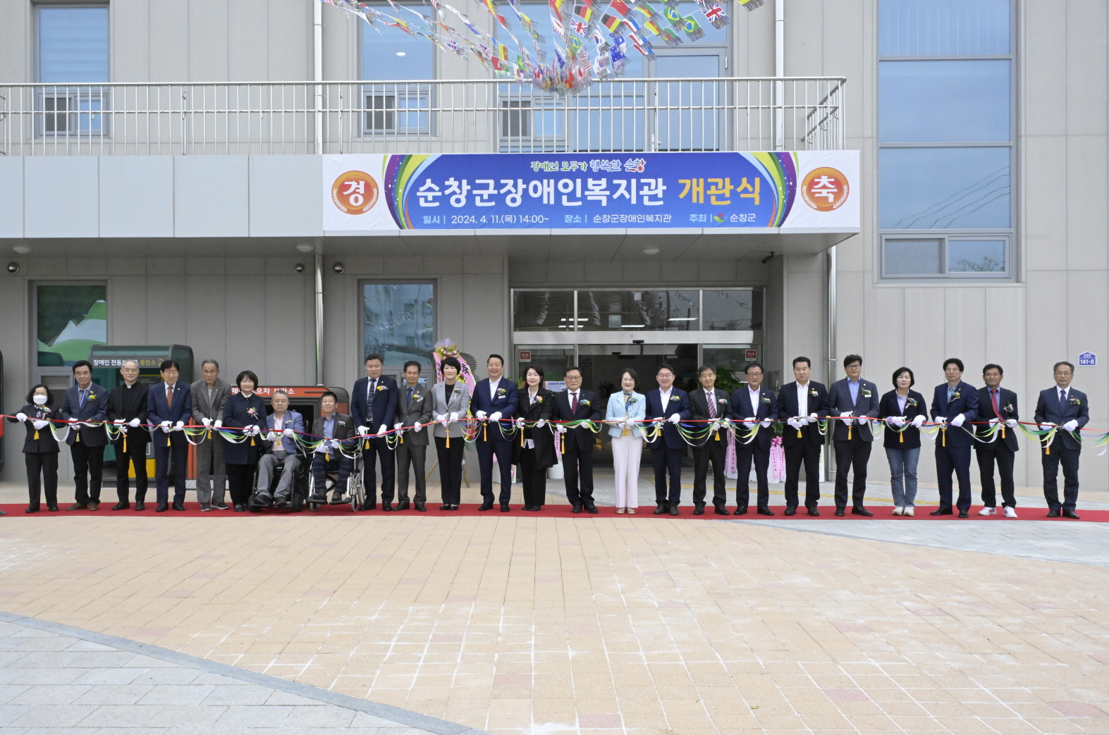 - 순창군 장애인복지관 개관식이 11일 복지관 광장에서 500여명 장애인들이 참석한 가운데 성황리에 마쳤다. 이날 개관식은 다채로운 축하공연을 시작으로 최영일 순창군수, 신정이 군의회 의장을 비롯해 김광환 한국지체장애인협회 중앙회장 등 주요 인사들이 축하의 인사말로 이어졌다. -2024년 4월 11일-