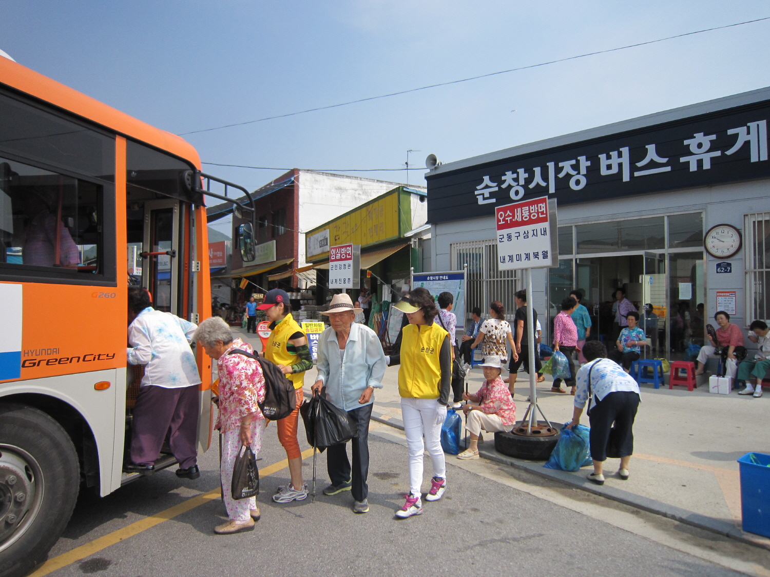 - 순창군이 보다 더 편리한 전통시장 환경을 만들기 위해 버스휴게실 냉.난방 시설의 일제점검과 함께 냉온수기 비치, 야외 그늘막 설치를 보강키로 하는 등 시장 이용객의 편의를 위해 전력을 다하고 있다. 또한 노약자들의 무거운 짐을 들어주는 버스승차 전담 도우미를 배치하고, 자원봉사단체와 협조를 통해 버스행선지 안내와 주차장 질서 유지 등 안전사고 예방에도 앞장서고 있다. -2012. 6. 18-