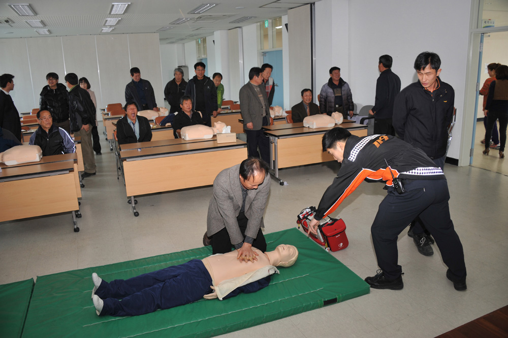 - 안전한 선진국가를 이루기 위한 안전문화 선진화 교육이 9일 순창군청소년센터에서 열렸다. 순창군 자율방재단원, 공무원 등 50여명이 참석한 가운데 열린 이번 교육은 청소년센터 세미나실에서 전라북도 소방안전본부 주관으로 ‘4분의 기적 심폐소생술(CPR)'의 체험식 교육과 실습이 있었다. 군은 심폐소생술 교육 보급과 확산을 통해 심정지 환자의 소생률을 상승시킴으로써 생명 안전문화 정착에 기여할 방침이다. -2012. 3. 9-
