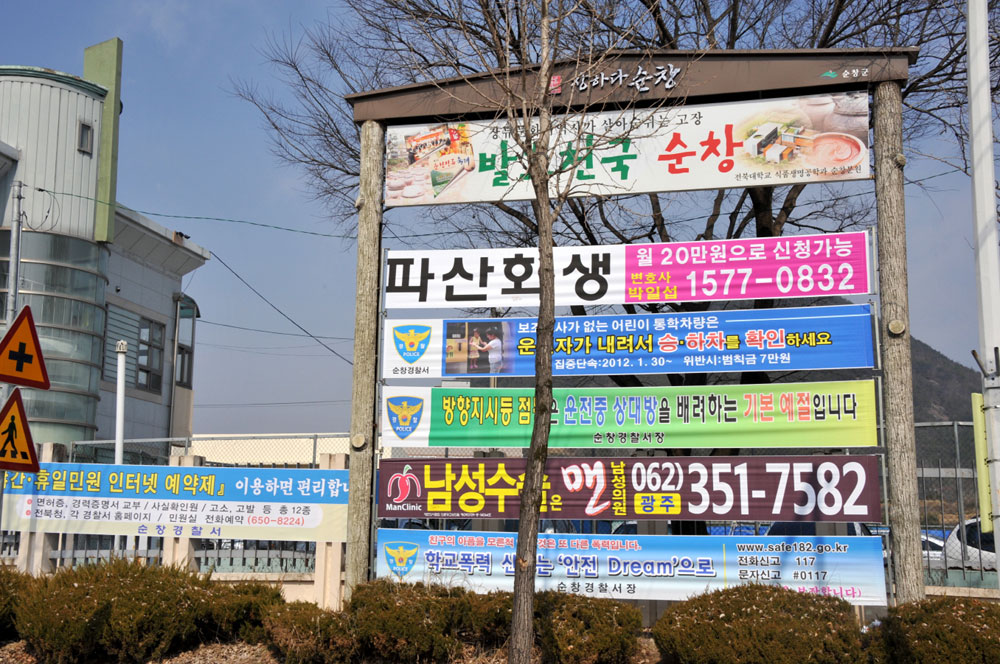 - 순창군이 2012년 전북방문의 해를 맞아 옥외광고물에 대한 대대적인 정비에 나선다. 순창읍을 비롯해 읍면 전지역을 대상으로, 특히 읍 시가지, 강천산과 민속마을 주변의 불법 게첨 현수막, 보행자의 안전을 위협하는 고정광고물, 청소년 생활주변과 주요 관광지 내의 유해광고물 등을 중점 정비할 계획이다. -2012. 3. 9-