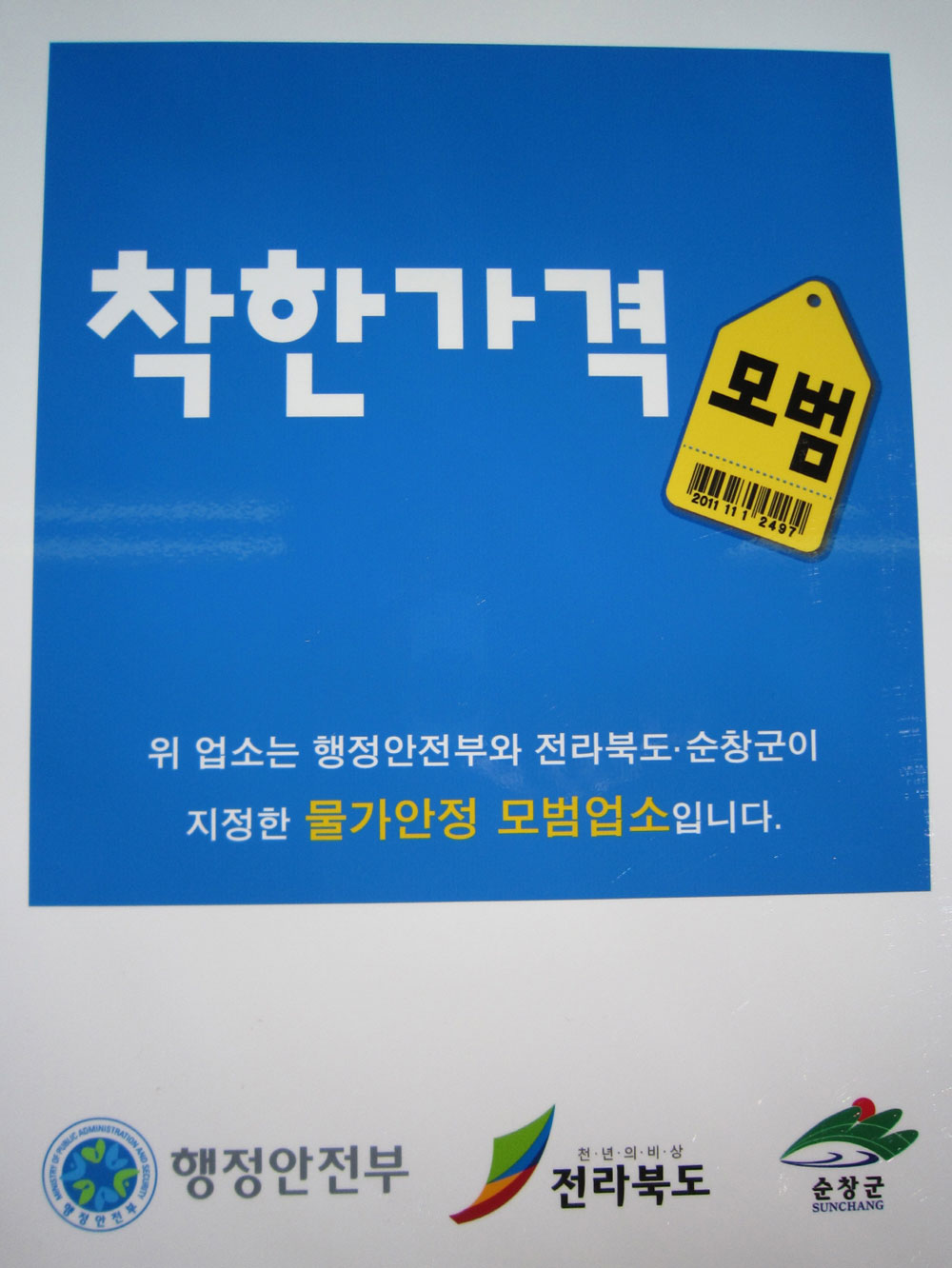 - 순창군이 2012년도 상반기 착한가격 물가안정 모범업소를 공개 모집하고 있다. 착한가격 물가안정 모범업소 지정은 개인서비스요금의 안정과 물가인상 억제분위기 확산을 꾀하여 지역주민의 생활 안정화를 기하는데 목적을 두고, 개인서비스업종 사업자의 자율적 참여를 유도한다는 방침이다. 모집기간은 이달 27일부터 다음달 30일까지로, 군 지역경제과(☎650-1322)로 직접 전화 신청을 하면 담당공무원이 방문하여 신청서를 작성 접수하게 된다. 이밖에 읍면사무소나 소비자단체에서도 모범업소를 추천 신청할 수 있다. -2012. 2. 24-