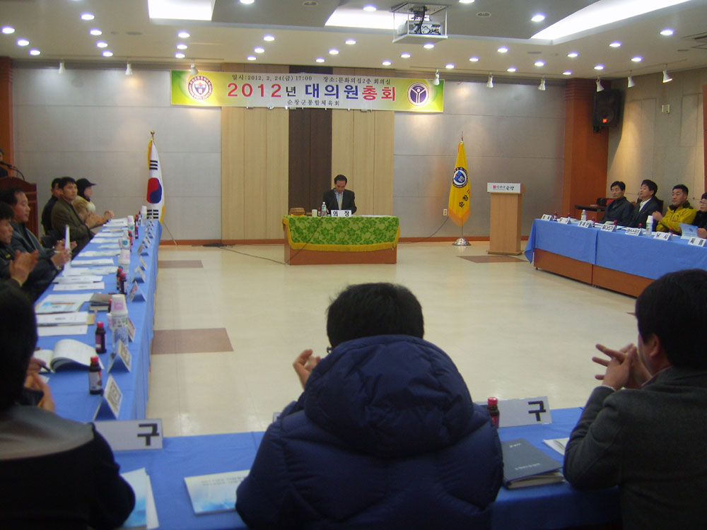 - 순창군통합체육회(회장 황숙주) 대의원총회가 지난24일 통합체육회 대의원 39명이 참석한 가운데 문화의 집에서 열렸다. 이날 대의원 총회에서는 2011년도 사업결산과 2012년도 사업계획 및 예산안 승인, 정관개정, 가맹종목단체 임원인준 등 통합체육회 운영 전반에 대해 논의했다. -2012. 2. 27-