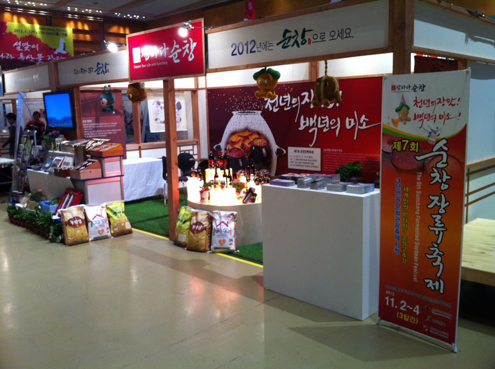 - ‘2012 전북방문의 해’ 선포식이 지난 12일 서울 삼성동 코엑스에서 개최된 가운데 황숙주 순창군수를 비롯한 관계 공무원과 업체가 참가해 순창의 관광자원과 특산품을 홍보․판매했다. 순창군은 12일부터 15일까지 4일간 서울 코엑스 홀에서 강천산, 민속마을, 향가유원지, 장류축제 등 관광자원을 알리고, 복분자주, 청국장쿠키, 호두, 전통고추장 등 지역 특산품을 전시하는 홍보 부스를 운영해 1만5천여명의 관람객이 다녀갔다. -2012. 1. 16-