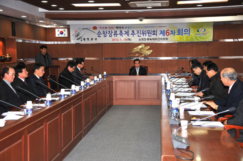 - 순창장류축제추진위원회(위원장 김기곤)는 19일 영상회의실에서 황숙주 순창군수를 비롯한 김기곤 장류축제위원장 및 위원 등 30여명이 참석한 가운데 열린 자체평가보고회에서 3년연속 문화관광 유망축제로 선정된 순창장류축제의 올해 개최시기를 11월 2일부터 3일간 개최하기로 결정했다. 위원들은 지난해 열린 제6회 순창장류축제가 민속마을을 축제장화하여 시너지효과를 창출했으며, 관광객 17만명과 116억원의 지역경제파급효과를 거둔 것으로 그 어느해보다도 성공적인 축제라는 평을 얻었다. -2012. 1. 19-