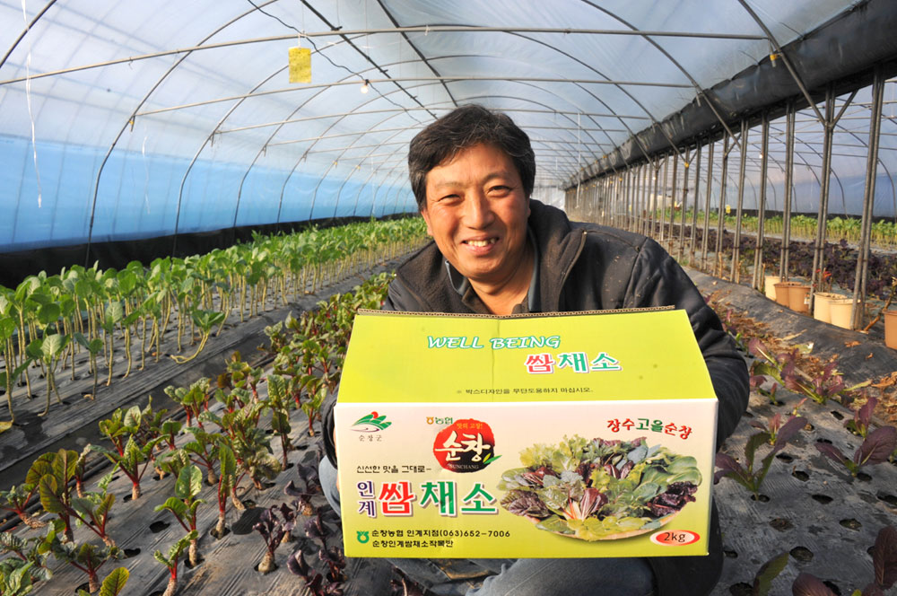 - 일년내내 쌈채소를 재배하고 있는 순창군 인계면 김재복(47)씨는 4년전에 친환경 인증을 받아 케일, 근대, 비트, 금강초 등 16여종의 쌈배추를 농한기 없이 1년내내 재배로 연간 6천 만원의 소득을 올리고 있다. 친환경 인증을 받은 쌈채소는 인근 광주 원예농협 공판장에서 인기가 높아 가져가자마자 불티나게 팔린다. 소비자가 신뢰할 수 있는 제품인데다 신선하고 종류가 많은 탓에 호응이 좋다. 비닐하우스 5동 2148㎡에 빼곡히 심어진 쌈배추는 공판장에 90% 이상이 나가고, 방문판매 및 주문판매 등 유통도 뛰어나 농가 주 소득원으로 자리 잡았다. -2011. 12. 21-