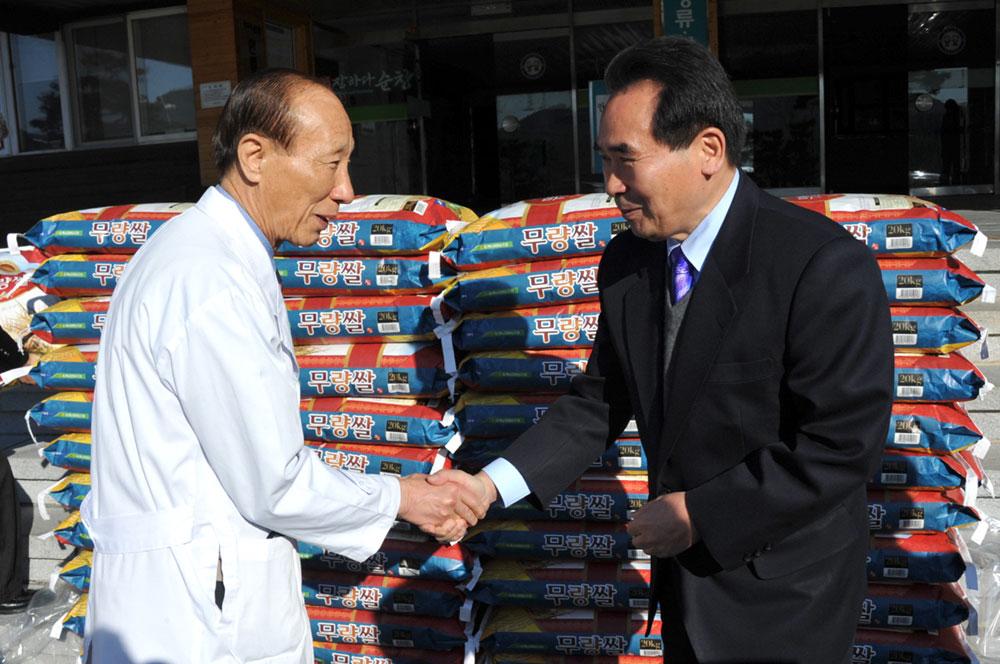 - 순창요양병원(원장 조진형)은 23일 겨울철 어려운 이웃을 위해 직원들과 병원에서 2백여만원을 십시일반 모아 쌀 20kg 50포를 순창군에 전달했다. -2011. 12. 23-