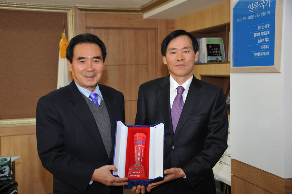- 순창군이 '2011년 조달이용 우수기관'으로 선정되어 23일 설동완 전북조달청장으로부터 군수실에서 상패를 전수받았다. 순창군은 조달청 이용실적이 우수하고, 나라장터를 적극 이용하는 등 조달행정의 투명성과 효율성 제고의 선도적 역할을 인정받아 선정됐다. -2011. 12. 23-