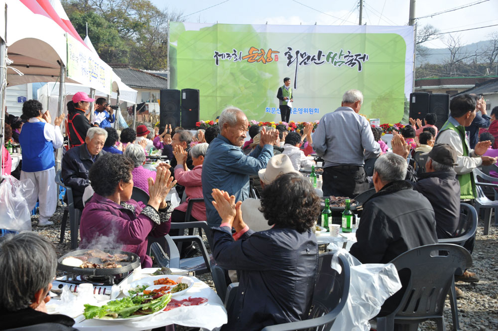 - 순창군 구림면 물통골 정보화마을에서 12일 제3회 쌈축제가 회문산권역 농촌마을종합개발사업 운영위원회(위원장 설성환) 주관으로 구림면 구산리 이암마을에서 열렸다. 풍물패 공연의 식전행사를 시작으로, 상추․두부만들기․판화체험과 달집태우기, 주민노래자랑을 열었다. 특별행사로 황소고기 뷔페점을 운영하고 상추 등 여러 가지 쌈 채소와 셋팅비는 무료로 운영해 큰 호응을 얻었다. -2011. 11. 14-
