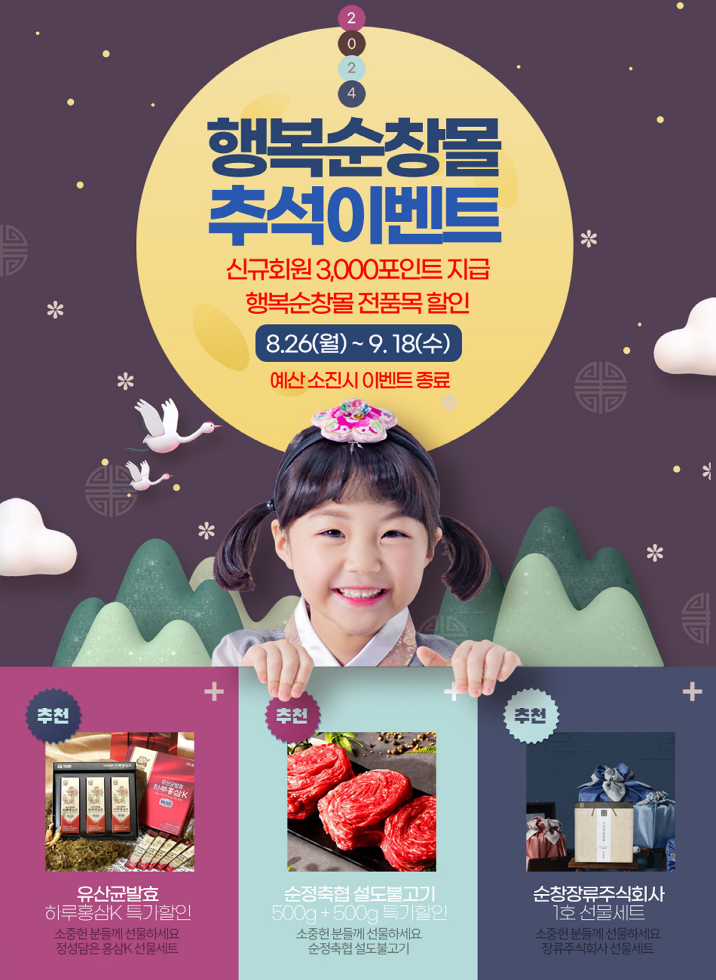 - 순창군이 민족 고유의 명절 추석을 맞아 온라인 쇼핑몰‘행복순창몰’에서 특별한 농특산물 할인 행사를 개최한다. 이번 행사는 지역 농가의 정성과 순창의 청정한 자연이 빚어낸 최고 품질의 농특산물을 합리적인 가격에 만나볼 수 있는 절호의 기회다. 8월 26일부터 9월 18일까지 진행되는 이번 행사에서는 순창의 자랑인 고소한 쌀부터 육질 좋은 한우, 향긋한 송이버섯, 신선한 쌈채소에 이르기까지 다양한 농특산물을 특별 할인가로 제공한다. 또한, 행복순창몰에 새로 가입한 신규 회원들을 위해 3,000 포인트를 증정하는 이벤트도 함께 진행된다. 다만, 준비된 물량이 조기 소진될 경우 행사가 예정보다 일찍 종료될 수 있으니 서둘러 참여하길 바란다. 군은 변화하는 소비 트렌드에 발맞춰 2023년 7월부터‘행복순창몰’을 운영하고 있다. 이는 온라인 소비 시장의 급격한 성장에 대응하고, 동시에 지역 농가와 소비자를 직접 연결하는 플랫폼으로써의 역할을 하고 있다. ‘행복순창몰’은 주요 포털사이트에서 '행복순창몰'을 검색하여 쉽게 접근할 수 있으며, 군은 사이트 내 고객센터의 상담게시판을 통해 빠르고 편리한 온라인 쇼핑 경험을 제공하고 있다. 최영일 순창군수는“이번 추석 맞이 특별 할인 행사는 우리 순창의 자랑스러운 농특산물을 더 많은 분들과 나누고자 하는 마음에서 마련했다”면서“올해 추석은, 행복순창몰에서 순창의 맛과 정성이 담긴 다양한 농특산물을 구매하셔서 더욱 풍성하고 의미 있는 명절을 보내시기 바란다”고 말했다.