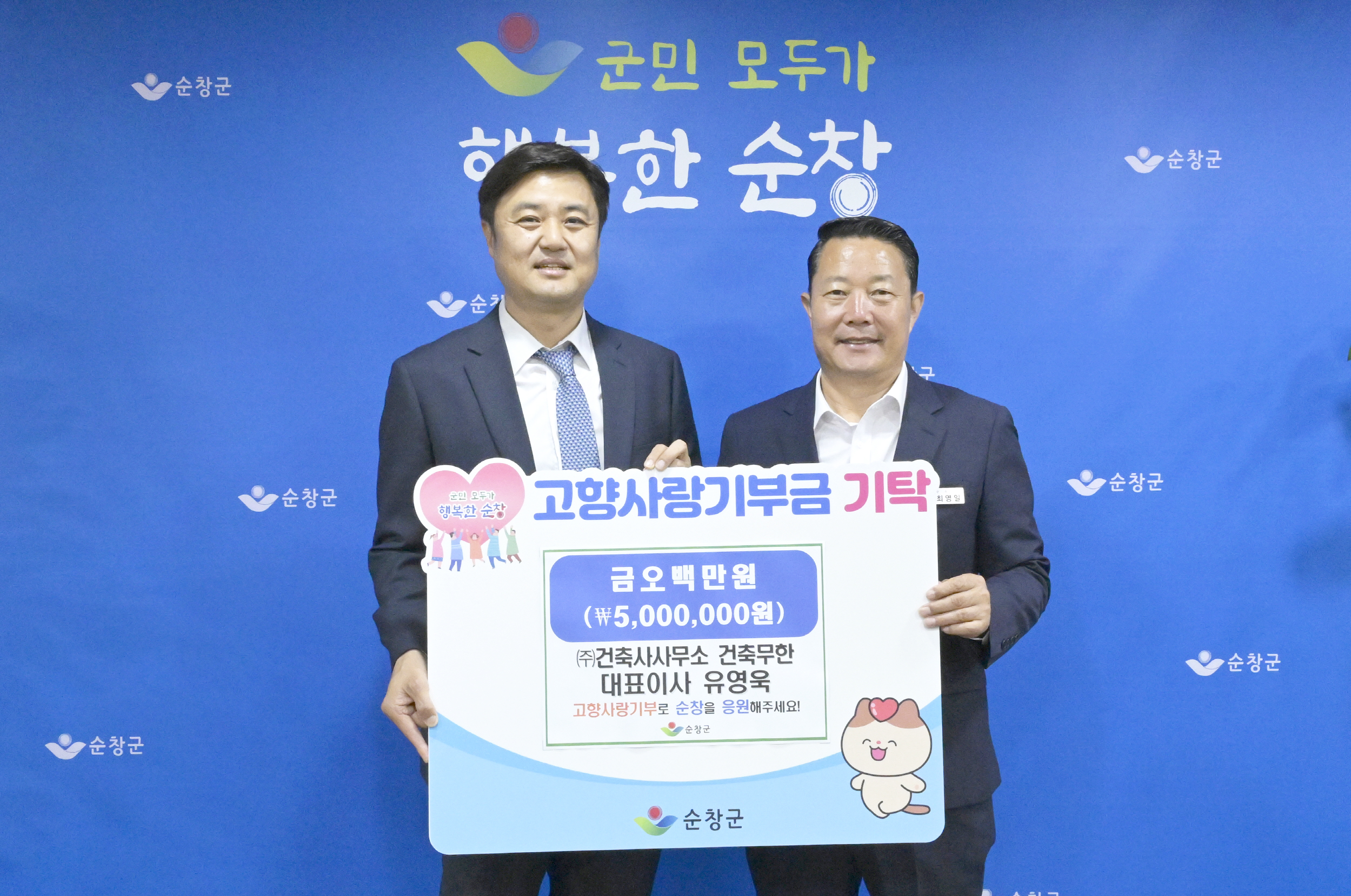 - ㈜건축사사무소 건축무한 유영욱 대표이사, 순창에 고향사랑기부금 500만원 기탁