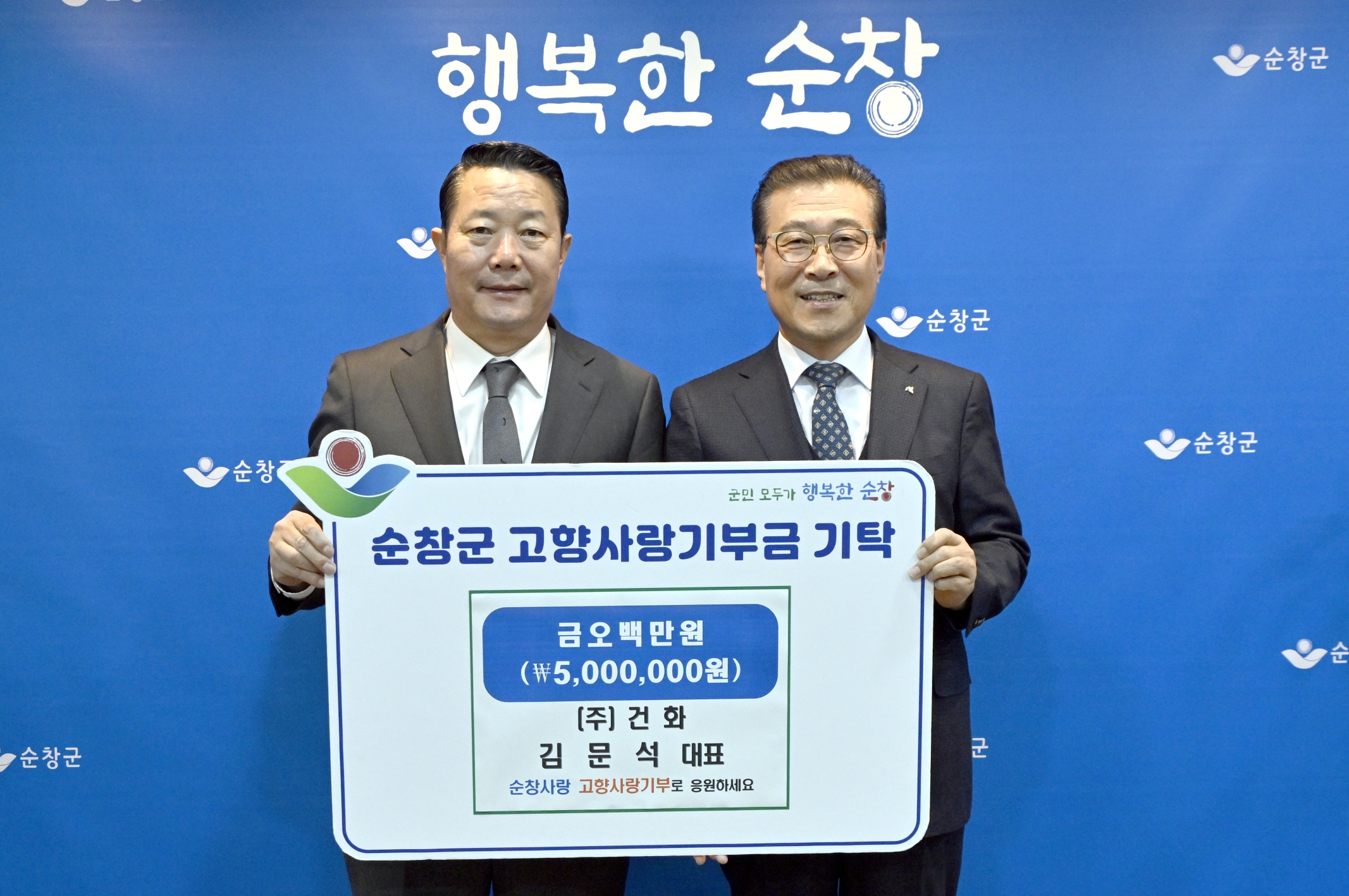 - ㈜건화 김문석 대표이사, 순창군에 고향사랑기부금 500만원 기탁