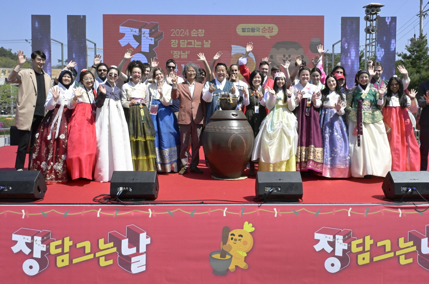 - 순창군(최영일 군수) 출연기관인 (재)순창발효관광재단(대표 선윤숙)이 주최한‘2024 순창 장담그는날’행사가 지난 13일 순창전통고추장민속마을 일원에서 열려 많은 참가자들과 관광객들이 참여한 가운데 성황리에 마쳤다. 이번 행사는 안전하고 건강한 먹거리에 관심이 높아진 현대인들에게 전통 방식의 장담그기를 체험해 보고 직접 손으로 담근 장을 숙성기간을 거쳐 각 가정으로 배송해 맛볼 기회를 제공하기 위해 마련됐다. 또한, 장독대 분양 신청자가 아니더라도 행사장을 방문한 관람객들이 즐길 수 있도록 지역업체 생산품 판매존과 체험존을 운영해 볼거리, 즐길거리가 풍성했다는 평가를 받았다. 개막식 이후에는 최영일 순창군수와 장류 제조 명인․기능인이 함께하여 전통적인 장담그는 방법을 관람객들에게 선보였으며, 장독대 분양을 신청한 참가자들과 행사장에서 참가를 희망한 관람객들이 함께한 메주 만들기 퍼포먼스도 진행됐다. 행사 중간에는 순창발효관광재단 직원들이 직접 참여하는 조선시대 퓨전의상 컨셉의 장내려온다! 퍼레이드가 열려 많은 방문객들의 호응을 얻었으며, 또한, 조선시대 저잣거리 분위기를 낼 수 있도록 옛날 복장의 캐릭터들이 곳곳에 배치되어 관람객들과 인사를 나누며 흥미를 돋웠다. 행사 마지막을 장식한 풍물대동굿에는 순창국악원 풍물패가 신나는 풍악소리로 행사장을 가득 채웠으며 관광객과 주민들이 참여하여 신명 나는 한마당이 펼쳐지며 행사를 마무리했다.