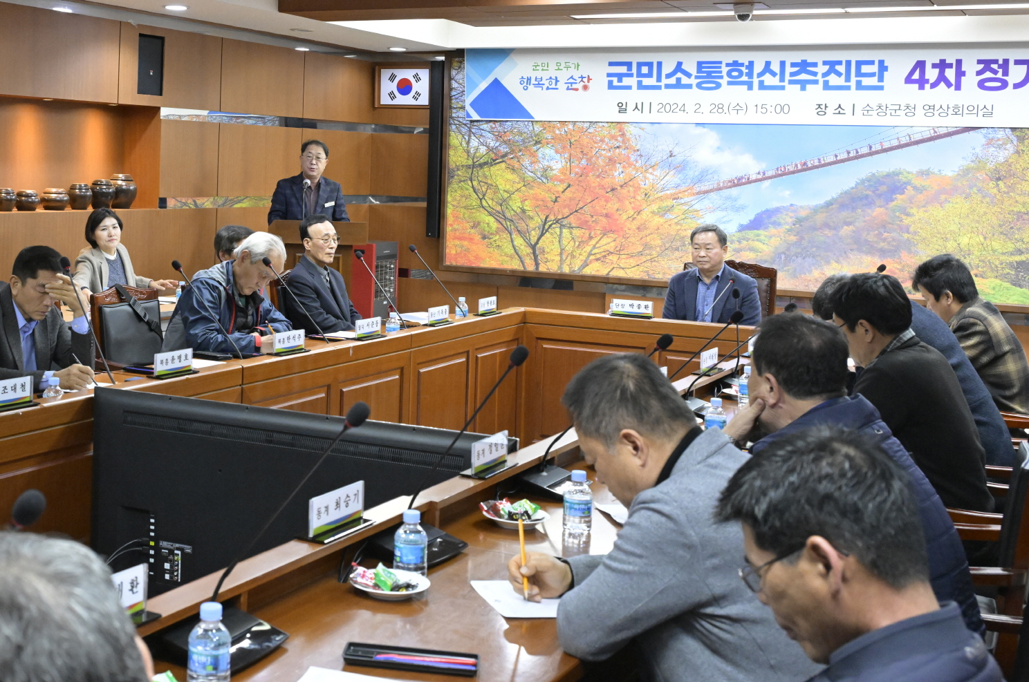 - 순창군이 지난 28일 군청 영상회의실에서 군민과 행정의 가교역할을 수행하고 있는 순창군 군민소통혁신추진단 4차 정기회의를 개최했다. 민선 8기 5대 목표 중 하나인‘군민화합’실현을 위해 군민의 목소리를 대변하는 11개 읍·면 주민들로 구성된 추진단은 평소 군정 발전에 관심이 많았던 만큼 전원이 참석하여 참신한 의견을 제시하는 등 열띤 토론의 장을 보였다. 이날 회의는 박종환 추진단장의 주재 아래 평소 군정 발전을 위해 고민했었던 사항들에 대해 단원들이 서로 자유롭게 의견을 나누는 방식으로 진행되었으며, 생활 속 불편 사항 개선 및 경제·관광 활성화 등 순창 발전을 견인할 수 있는 다양한 의견들이 도출됐다. 군민소통혁신추진단은 지난해 4월 20일 발대식을 시작으로, 4차례 정기회의를 통하여 총 61건의 정책제안과 건의를 통해 순창군의 변화를 이끌어왔다. 실제로, 그간 회의에서 제안되었던 현실성 있는 양질의 정책들은 실무부서의 심도 있는 검토를 거쳐 일부 군 정책에 반영돼 추진 중에 있으며, 또한 군은 중장기적 검토가 필요한 정책은 빠른 시일 내 반영될 수 있도록 단계적으로 검토할 계획에 있다고 밝혔다. 박종환 추진단장은“추진단이 오늘 제안한 작지만 소중한 의견들이 군민들의 삶의 질 향상과 순창군 성장에 보탬이 될 수 있는 우수사례가 되길 바란다”고 전했다. 군 관계자는“1년간 군민이 만들어가는 소통행정의 선도주자로 각계각층의 목소리를 대변하는 등 큰 역할을 해주신 추진단원들께 깊이 감사드리며, 행정에서는 허울뿐인 소통행정에 그치지 않고, 각종 정책에 군민의 목소리를 담을 수 있도록 최선을 다하겠다”고 감사함을 표했다. 한편, 군민소통혁신추진단 1기는 이번 회의를 마지막으로 활동을 마무리하며, 군민의 목소리를 대변할 새로운 단원을 올 4월에 구성·운영할 계획이다.