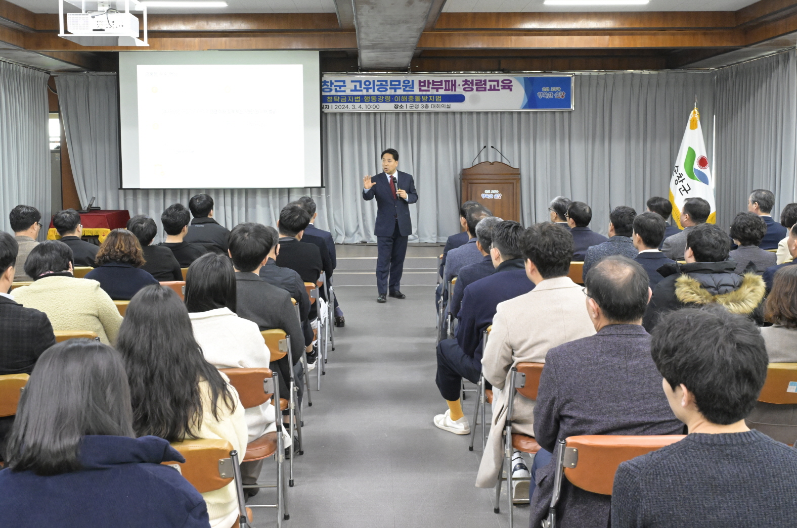 - 순창군이 4일 청사 3층 대회의실에서 5급 이상 간부공무원 및 신규자들을 대상으로 반부패·청렴 교육을 개최해 청렴 실천 의지를 다졌다. 이번 교육은 공직자들에게 부패와 취약한 업무 분야에서의 의식을 높이고, 지역사회에 투명하고 효율적인 행정을 제공하기 위해 마련됐다. 국민권익위원회 청렴연수원 등록 전문 강사인 이지문 강사 주재하에 진행된 이번 강의는 부당한 업무지시 및 직장 내 갑질과 근절 방안, 청탁금지법, 공직자의 이해충돌방지법 등을 중점적으로 다뤘다. 그뿐만 아니라, 청탁금지법을 비롯하여 갑질 금지 규정 등 다양한 주제를 다뤘으며, 이를 통해 공직자들은 법규 준수와 윤리적 책임을 강조하고 부패와 취약한 업무 분야에 대한 인식을 고취시켰다. 특히, 이날 교육을 수강한 최영일 순창군수는 솔선수범하는 태도로 공직문화 조성에 앞장설 것을 선언하고, 전 직원을 대표하여 이번 교육의 중요성을 강조하며, 모든 공직자가 투명하고 청렴한 행정을 위해 노력할 것을 당부했다. 아울러, 최영일 순창군수는“한 명만 잘해서 청렴한 순창을 만들 수 있는 것이 아니기 때문에 전 직원 모두가 다 관심을 기울이고 지속적으로 노력해야 한다”며“군민들이 달라진 순창군의 모습을 체감할 수 있도록 직원 모두가 부패 없는 순창군, 깨끗하고 청렴한 공직문화를 조성하는 데 앞장서자”고 말했다. 한편, 순창군은 지난 1월 최영일 군수를 비롯해 5급 이상 간부공무원들이 모여 솔선수범과 반부패 청렴실천을 위해 청렴서약식을 개최한 데 이어 전 직원을 대상으로 매주 청렴 관련문자 메시지를 전송하는 등 군 청렴도 회복을 위한 내부 단속과 시책발굴에 주력하고 있다.