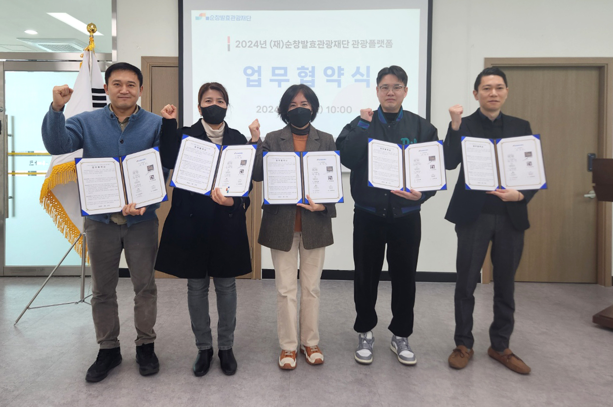 - 순창군 출연기관인 (재)순창발효관광재단(대표 선윤숙, 이하 관광재단)은 27일 순창군 관광 산업 발전을 위해 유동인구가 많은 지역의 소상공인 6개 업체와 업무협약을 체결했다고 밝혔다. 이번 협약은 관광재단이 지역 발전과 관광 사업의 활성화를 통한 중요한 발판을 마련하기 위해 추진한 것으로, 지역 소상공인 업체들과 손 잡고 순창의 유명 관광명소를 홍보해 공동으로 관광객 유치에 나서기로 했다. 이날 협약에 참여한 지역업체는 외부 관광객들이 많이 찾는 카페 가온를 비롯해 다래, 산솔, 오늘, 자연다울수록, 한정당 등 6곳으로, 관광재단과 지역업체 측은 관광 플랫폼을 구축하여 관광객의 편익 증대 및 홍보비용 절감으로 지역상생의 모범사례가 될 수 있게 서로 협력하기로 약속했다. 협약에 따라 관광재단은 순창발효테마파크 전시관을 방문하는 관광객에게 협약 업체에서 사용할 수 있는 할인 쿠폰을 제공하며, 협약 업체들은 지역 내 주요 관광지에 대한 정보를 게시하는 게시대를 설치하여 외부에서 오는 관광객들에게 순창의 다양한 매력을 소개할 계획이다. 앞서, 관광재단은 지난해 6월 순창읍 소재에 위치한 지역 카페·체험관 3곳과 관광플랫폼 업무협약을 체결한 바 있으며, 협약에 따라 발효테마파크를 방문한 관광객들에게 할인 쿠폰을 제공하여 테마파크의 관광객 수를 늘리고 지역 업체의 매출을 증가시키는 일석이조 효과를 얻었다. 선윤숙 대표는“작년부터 진행한 관광플랫폼 성과를 토대로 이번에 더 많은 업체들을 선정할 수 있게 되었다”며“올해에도 성과를 이어나가 지역과 상생하는 순창발효관광재단이라는 선례를 남기겠다”고 전했다.