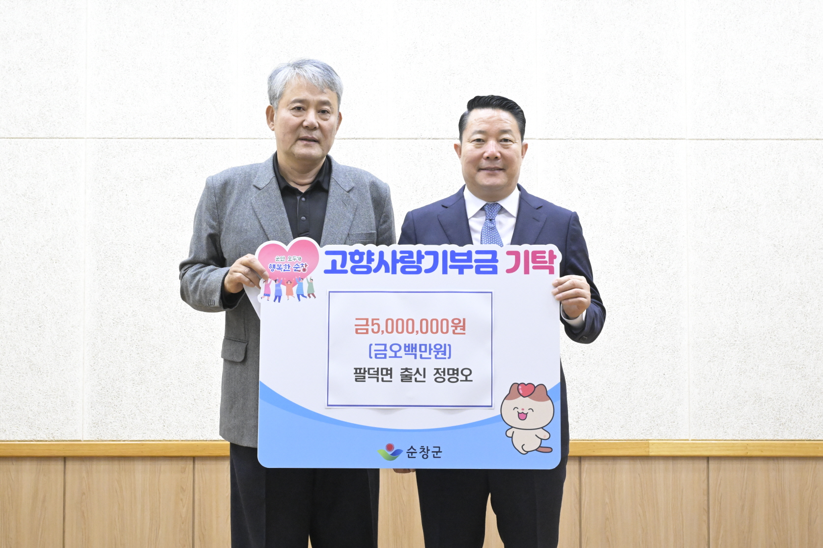 - 순창 출신 기업인 정명오 대표, 고향사랑기부금 최고액 500만원 기부