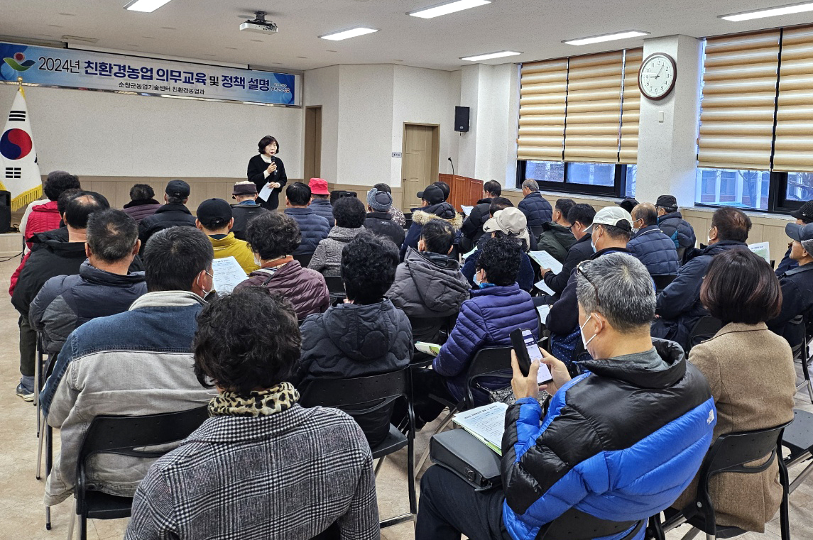 - 순창군이 최근 지속 가능한 친환경 농업 실천을 위해 추진하는 읍·면 순회 친환경농업 의무교육 및 정책 설명이 지역 농가들로부터 큰 호응을 얻고 있다. 친환경농업 의무 교육은 관련 법률에 따라 친환경농업 인증(신규·갱신)을 받고자 하는 농업인 대상으로 2년마다 최소 1회 반드시 이수해야 하는 법정 의무교육이다. 이번 교육은 이달 31일까지 진행되며, 군은 교육에 앞서 친환경농업의 좋은 점과 필요성 등을 비롯해 민선 8기 최영일 군수의 공약사업 중 하나인 친환경 직불금, 생산장려금, 재해보험료 등 현재 순창군이 지원하는 사업에 대해 설명도 병행하고 있다. 최영일 순창군수는“자연과 사람이 공존하는 생태순환 친환경농업 실현으로 지속 가능한 농업·농촌을 만들기 위해 친환경 실천 농가의 지원사업을 다방면으로 확대해 나갈 계획”이라며“앞으로도 농가들의 농업 기반을 강화할 수 있도록 다각적인 방면으로 지원을 아끼지 않겠다”고 말했다. 한편, 순창군 2023년도 친환경인증 면적은 834농가, 1,058ha로 2022년에 이어 친환경 인증면적 부분에서 전북특별자치도 내에서 1위를 유지하고 있다.