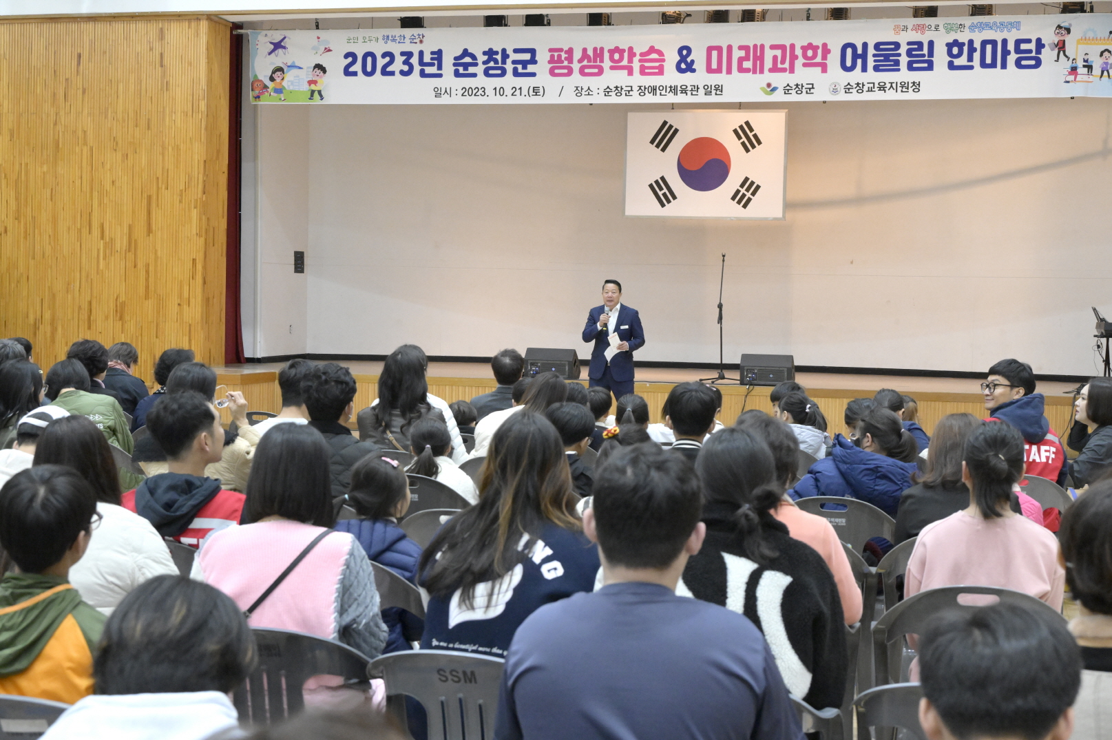 - 순창군이 순창교육지원청과 협력해 진행한‘2023 순창 평생학습·미래과학 어울림 한마당’행사가 지난 21일 성황리에 열렸다. 이번 행사는 올 한해 군에서 진행했던 평생학습 분야 성과를 공유하고 평생학습 문화 확산하기 위해 마련됐으며, 이날 평생교육 성과발표와 전시ㆍ체험부스와 함께 4차 산업분야와 다양한 과학체험, 환경생태체험존을 운영해 지역주민들과 학생들의 큰 호응을 얻었다. 이날 평생교육 성과발표회는 춤나래, 태평소, 어린이합창, 하모니카, 댄스(순창고) 등으로 꾸며졌으며, 서각, 대나무 공예 등의 전시와 함께 문해교육 참여자들의 시화도 전시되었다. 이외에도 체험부스는 자개거울 만들기, 아로마 인헤일러 만들기, 타로카드를 통한 내 마음 들여다보기 등 군에서 운영하는 13개의 평생교육 분야 체험과 메타버스, 드론, 코딩로봇존 등 23개 분야의 미래교육 체험프로그램이 운영되었다. 특히, 당일 행사를 위해 군과 교육지원청에서는 각각 안전관리계획을 수립하고 안전요원들을 곳곳에 배치할 뿐 아니라 보건의료원 등과 유기적인 협조체제를 유지하여 안전하게 행사를 마무리했다. 최영일 순창군수는“평생학습 체험부터 4차산업 관련 미래과학 체험까지 남녀노소 모두가 즐길 수 있어 전 세대를 아우르는 축제의 장이 되었다”며“앞으로도 군민 모두가 학습권을 보장받고, 원하는 학습을 할 수 있도록 노력하겠다”고 말했다.