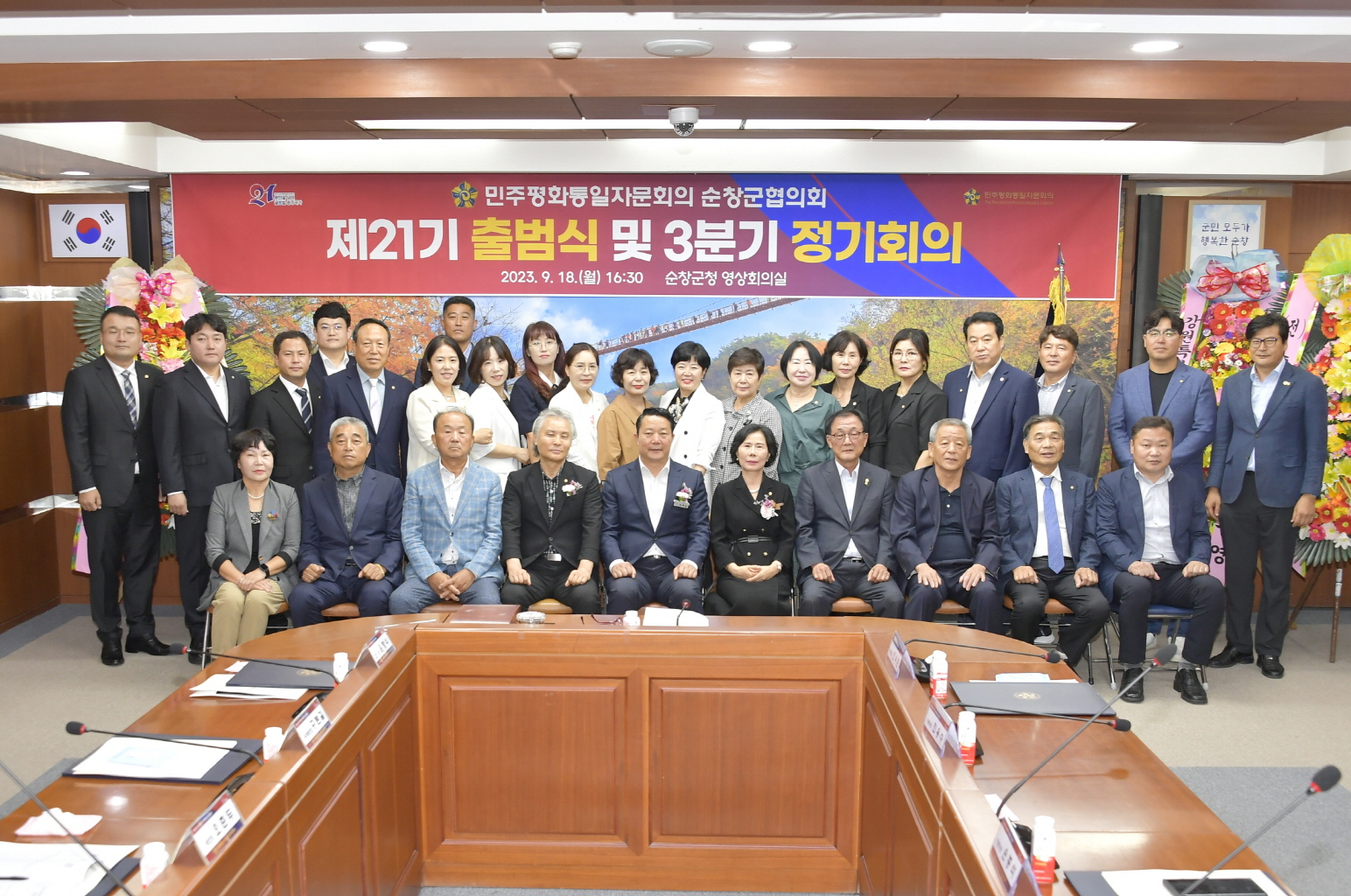 - 민주평화통일자문회의 순창군협의회(회장 서애숙)는 지난 18일 순창군청 영상회의실에서 최영일 군수를 비롯한 자문위원과 관계자 40여명이 참석한 가운데 제21기 출범식 및 3분기 정기회의를 개최했다. 이날 출범식에서는 민주평화통일자문회의 의장인 대통령을 대신해 대행 기관장인 최영일 순창군수가 제21기 자문위원들에게 위촉장을 전달했다. 이번에 위촉된 제21기 자문위원 35명은 2023년 9월 1일부터 2025년 8월 31일까지 2년의 임기 동안 서애숙 협의회장을 중심으로 지역에서 평화통일을 위한 여론수렴과 평화통일 정책에 관한 자문·건의 등의 역할을 성실히 수행하게 된다. 서애숙 협의회장은“평화통일 정책수립과 국민적 통일의지를 결집하여 자문회의의 헌법적 기능을 수행하는데 책임감과 사명감을 갖고 충실히 임하겠다”고 전했다. 최영일 순창군수는 “제21기 협의회 출범을 축하하며, 지역주민들의 역량을 결집할 수 있도록 힘써주시고 평화통일 시대를 맞이할 수 있는 군민모두가 행복한 순창 실현에 기여해 주실 것을 당부드린다”고 말했다. 한편, 민주평화통일자문회의는 대한민국 헌법 제92조에 설치 근거를 둔 헌법기관이자 대통령 직속 기구로 민주적 평화통일에 관한 정책을 수립하고 추진하고 있다.