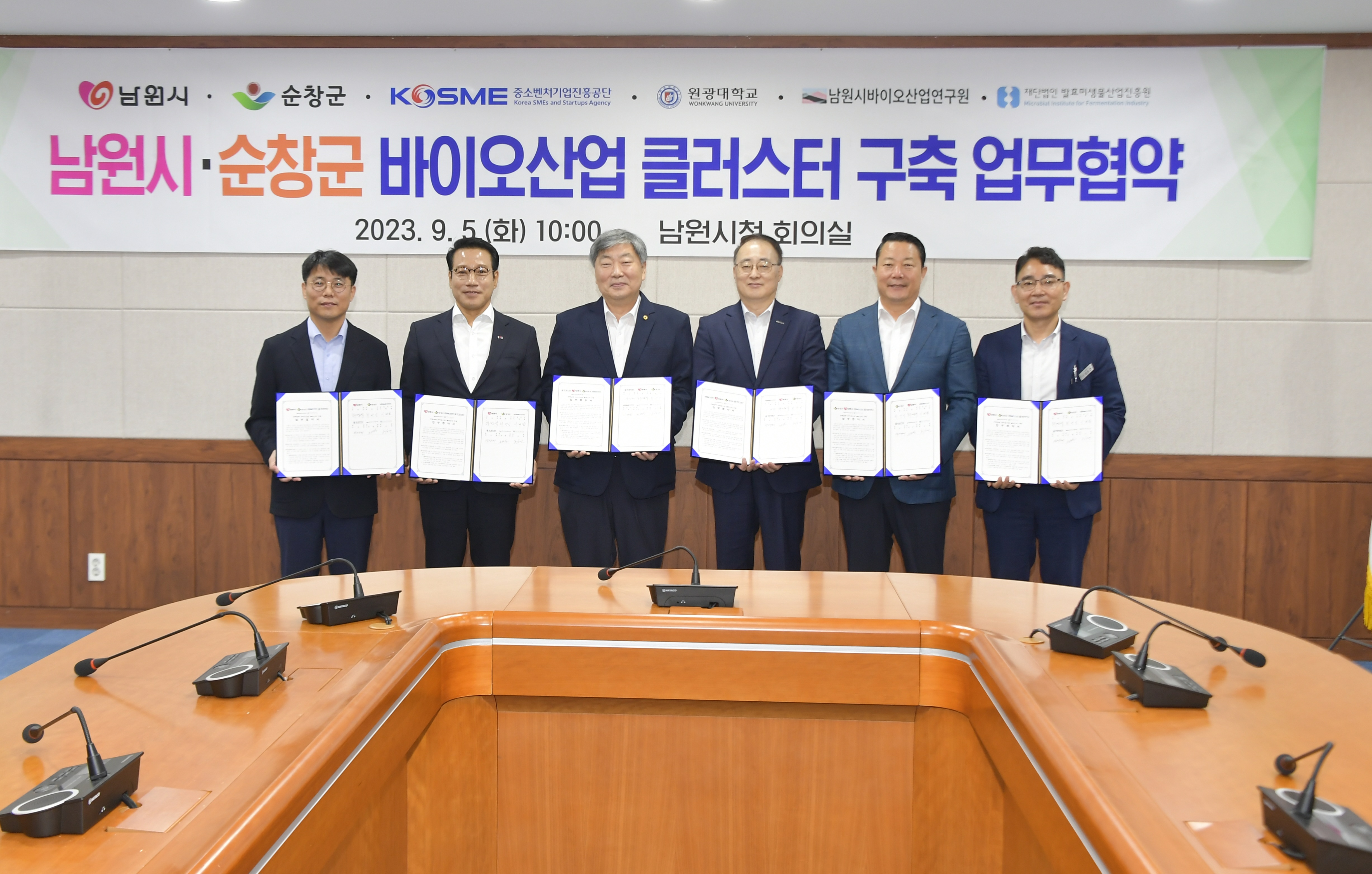 - 순창군이 신성장 동력사업인‘바이오산업’의 메카로 거듭나기 위한 발걸음을 띄었다. 군은 지난 5일 남원시청에서 남원시, 중소벤처기업진흥공단, 원광대 등 6개 유관기관과 상호협력 업무협약을 체결했다고 밝혔다. 협약식에는 최영일 순창군수, 최경식 남원시장을 비롯해, 이병철 중소벤처기업진흥공단 상임이사, 박성태 원광대학교 총장, 정도연 순창발효미생물산업진흥원장, 유병완 남원시바이오산업연구원정책실장 등이 참석했다. 이날 체결된‘전북남부 바이오산업 클러스터 구축 업무협약’은 순창군과 남원시를 중심으로 바이오산업 클러스터를 구축하여 지역의 바이오 관련 기업을 적극 지원 및 육성하기 위해 마련됐다. 협약에 참여한 6개 기관은 앞으로 협력네트워크를 통해 기업 성장을 위한 정책자금 및 바우처 지원, 우수창업기업 이전유치, 신규창업자 교육, 판로 개척 및 기술개발 지원, 전문인력양성 등 패키지형 복합 지원을 함께 추진할 계획이다. 아울러, 군은 이번 협약을 통해 바이오산업 성장 가능성과 인적자원 육성 역량을 극대화하는 등 경쟁력을 높여 바이오 기업 양성의 중심지로 거듭나겠다는 의지를 나타냈다. 특히, 군은 전북지역 대다수의 시·군이 겪고 있는 지방소멸 위기에 적극 대응하기 위해 바이오산업 분야 우수기업을 발굴해 지원하고 중장기적으로는 투자유치, 기업 이전 등 바이오산업 육성 생태계를 조성해 지역산업 성장 로드맵을 마련해 나갈 예정이다. 최영일 순창군수는“이날 협약이 전북남부 바이오산업 육성을 위한 초석이 될 것”이라면서“앞으로 순창과 남원지역의 바이오산업 관련 기업들이 서로 협력하여 연계사업을 발굴하고, 유관기관과의 협력을 통해 명실상부 바이오산업의 중심지로 거듭나길 기대한다”고 말했다.