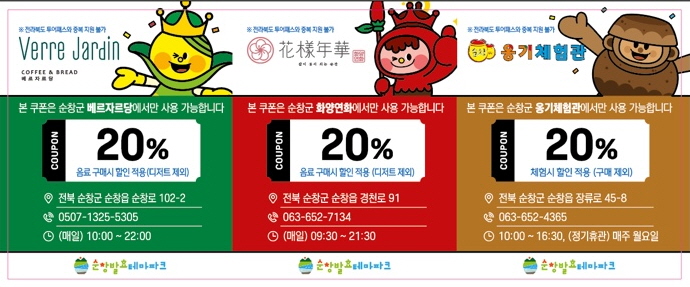 - 순창발효테마파크에서 쏜다!, 지역 유명업체 20% 할인받아 이용하세요!