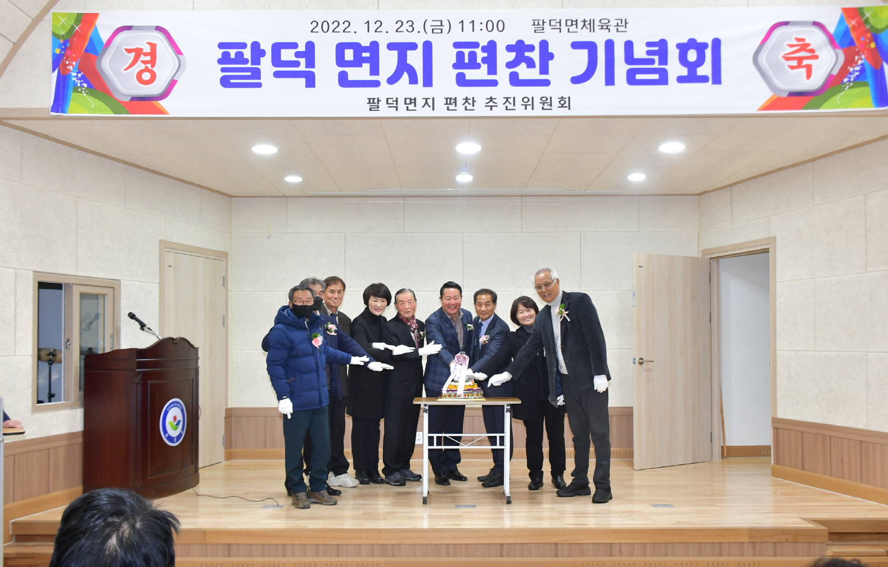 - 팔덕면지편찬위원회(이하‘위원회’, 명예위원장 오정곤)가 팔덕면민의 오랜 숙원이었던 ‘팔덕면지’를 편찬했다. 위원회는 지난 23일 팔덕체육관에서 최영일 순창군수, 신정이 순창군의회 의장 및 의원, 오은미 도의원, 기관·사회단체장, 편찬위원, 면민 등 150여 명이 참석한 가운데 ‘팔덕면지’편찬 기념식을 개최했다. 이번 면지 편찬사업은 팔덕면의 유구한 역사와 문화의 뿌리를 되찾고 면민의 애향심 고취 및 후손에게 올바른 정신 문화를 물려주기 위해 추진됐다. 면지는 2021년 8월 25일 위원회 발대식을 시작으로 2022년 12월 10일까지 약 1년 4개월 동안 66명의 면지편찬위원이 직접 발로 뛰며 고대사부터 현대에 이르기까지 자료를 수집해 선조들이 살아온 팔덕면의 향토사를 기술한 것이다. 면지 수록은 제1편 지리, 제2편 역사, 제3편 마을의 유래 등 총 12편, 1,116쪽 분량의 컬러와 흑백이 혼합된 단행본으로 구성되어 있고 집필의 속도를 내고 한점의 하자가 없도록 매월 1회 편찬위원회 회의를 개최 그때그때 나타난 문제점을 신속히 해결하면서 집필에 최선을 다했다. 특히 고대사 등 인용문은 현대인이 알아보기 쉽게 고어체를 현대어로 번역하여 수록했고, 8.15 광복 이후 산업혁명과 새마을 운동, 6∼70년대 농촌의 생활상 등 근현대사를 자세히 기록했다. 팔덕면은 강천산군립공원과 강천사, 삼인대, 남근석 등 관광자원과 문화유산이 많이 산재 되어 있어, 위원회는 이를 널리 알리기 위해 면지 제일 앞면에 화보로 제작하여 독자들이 편히 볼 수 있도록 했다. 더불어 제6 사회 편에는 8.15 광복 이후 지역에서 발생했던 주요 사건과 미담 사례, 팔덕면의 변화된 모습 그리고 사익보다 공익을 위해 지역에서 활동하고 있는 각 사회단체의 설립 취지 및 연역, 주요 활동 사항 등을 자세히 수록했다. 아울러 경향 각지에서 국가와 지역사회 발전을 위하여 활동하고 있는 훌륭한 팔덕면 출신 36명을 발굴하고 제12편에 지역을 빛낸 인물로 소개해 후세인에게 귀감이 되도록 했다. 오정곤 명예위원장은 “1년 4개월이란 짧은 기간 동안 자료수집, 집필과 발간에 이르기까지 위원회를 중심으로 면민은 물론 기관단체가 적극 동참하여 값진 결실을 맺게 됐다”면서 “각 편마다 미흡한 점도 많고 오류도 부지중 범했을 것으로 사료되지만 독자 제위나 면민 여러분께 널리 이해를 구한다”고 말했다.