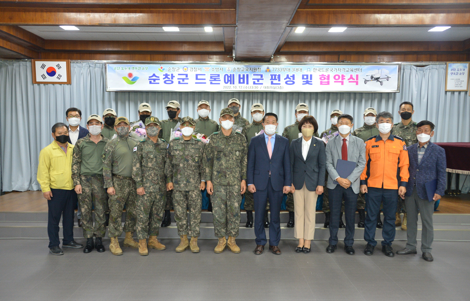 - 순창군은 12일 전국 최초로 민관군경·소방이 함께하는 드론지원 협력체계 구축을 위한 협약식을 진행했다. 이날 협약식에는 최영일 순창군수와 순창군의회 신정이 의장, 35사단 백마여단장 최진호 대령, 남원·순창 대대장 함성규 중령, 순창교육지원청 김항윤교육장, 순창소방서 강동일서장, 순창경찰서 김대우 정보보안과장, 김승규 한국드론국가자격센터장 등 30여명이 자리를 함께했다. 협약식의 주요 내용은 순창지역 각종 재난·재해 및 통합방위 사태 시 민관군경·소방의 통합 드론 운용으로 군민의 생명과 재산을 보호하기 위해 공동 협력하여 신속하고 효율적인 대응을 도모하는 내용이다. 또한 협약에 참여하는 기관의 임무와 역할 등 협조사항이 자세히 명기되어 있어 유사시 현장중심의 초동대응과 협력체계가 강화될 것으로 기대되고 있다. 이날 협약식에 앞서 드론지원예비군을 편성하고 지원예비군 10명에 대한 패치수여가 진행됐다. 최영일 순창군수는 “드론은 4차산업의 핵심기술 중 하나로 사회 여러분야에서 활용되고 있으며, 민관군경·소방 협력을 통해 군민의 안전과 행복에 효율적으로 대응해 주시기를 바란다”고 당부했다. 한편, 순창군과 35사단 백마여단은 지난 9월 30일 순창지역의 재해·재난에 적극적으로 대응하기 위한 협정식을 체결한 바 있다.