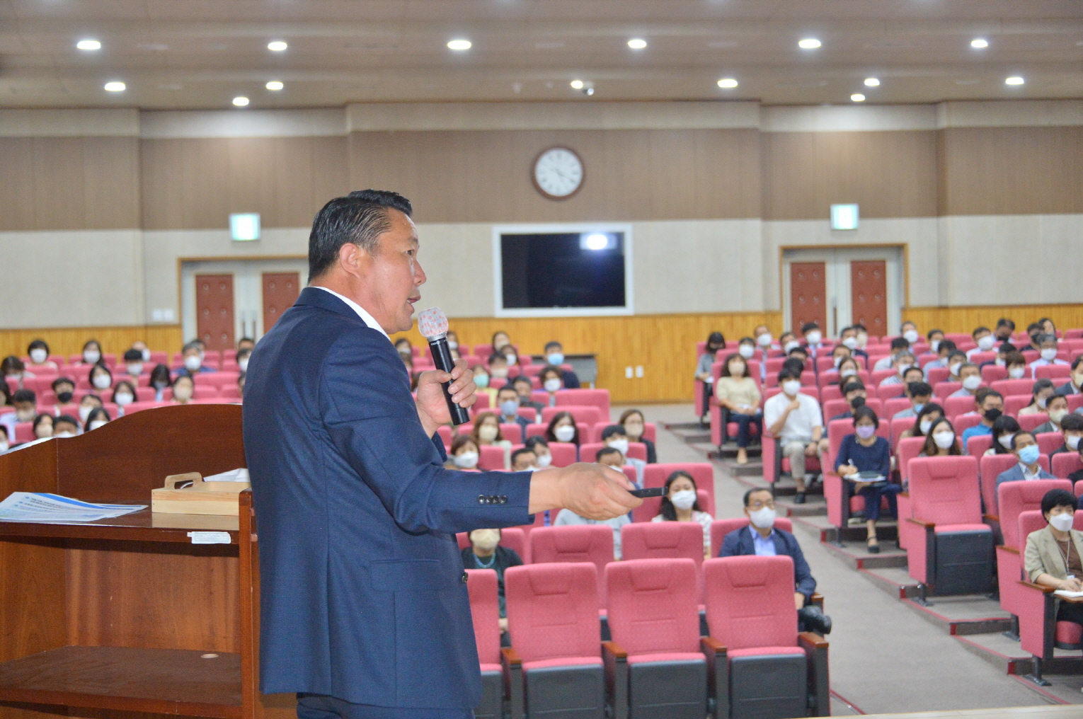- 순창군이 지난 23일 건강장수사업소 대강당에서 실무를 담당하는 공무원인 9급~6급 주무관 250여 명을 대상으로 민선 8기 군정방향을 이해와 공감대 형성을 위한 직무역량강화 교육을 가졌다. 이날 교육은 지난 8월 31일 부서장 등 간부공무원과 계장공무원을 대상으로 실시한 교육에 이어 2차로 실무 직원들을 대상으로 진행됐다. 1부에서는 최영일 순창군수가 민선8기 군정방향에 대한 설명과 함께 직원들과 소통하는 시간을 가졌으며, 2부에서는 웃음힐링 노민 강사를 초청하여 ‘나를 행복하게 하는 웃음’이란 주제로 업무에 지친 직원들에게 웃음을 통해 행복에너지를 전달하는 힐링교육이 이어졌다. 최영일 군수는 강연에서 민선8기 군정비전 ‘군민 모두가 행복한 순창’과 5대 목표, 이를 위한 ▲군민 모두에게 열린 소통행정 ▲전국제일의 보편적 복지시스템 구축 ▲효율적 군정 운영을 위한 조직 슬림화 ▲지방자치 시대의 성공을 이끌 자주재원 확대 ▲비효율적 공공건축물 건전화 추진 등 5대 정책방향에 대한 평소 생각과 소신을 직원들에게 피력했다. 또한 최영일 군수는 “공무원이 먼저 바뀌면 순창이 확 바뀐다”며 “민선 8기 군민 모두가 행복한 순창 실현을 위해서는 최일선에서 주민과 접하고 일을 추진하는 주무담당자의 역할과 역량이 매우 중요하고, 같이 힘을 모아 비전 실현에 적극적으로 동참해 줄 것”을 강조했다.