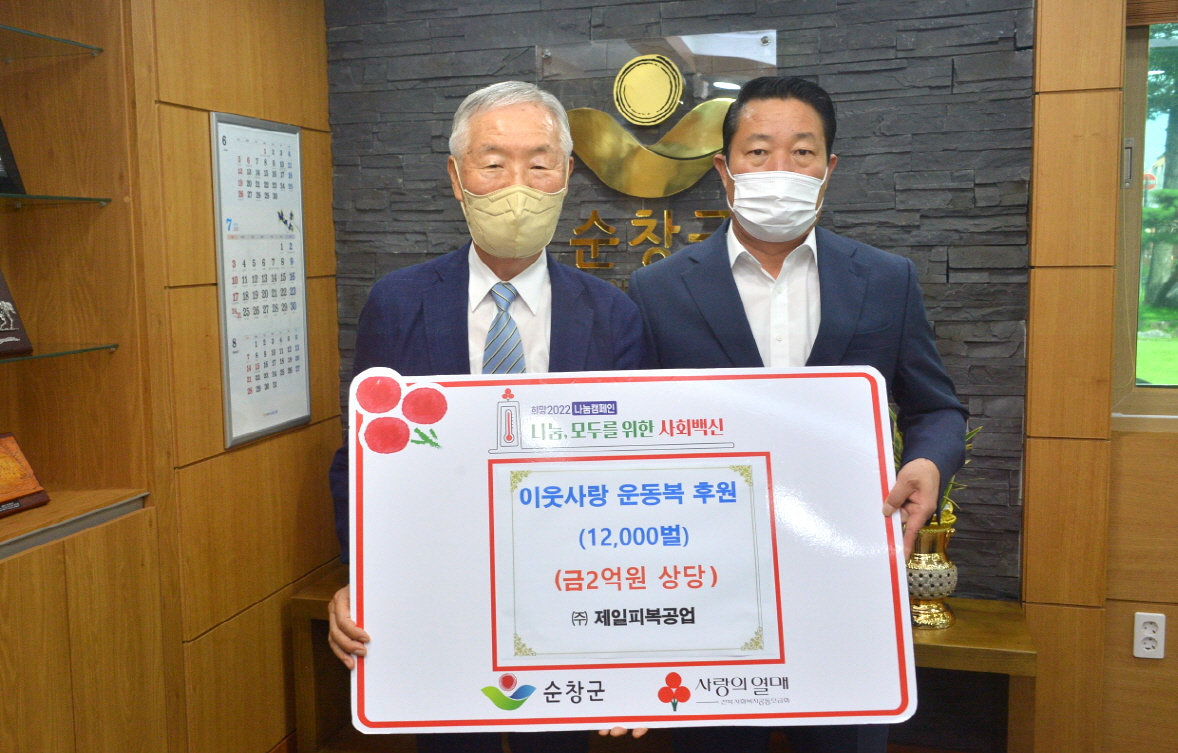 - ㈜제일피복공업, 순창군에 사계절 운동복 1만2000장 기탁