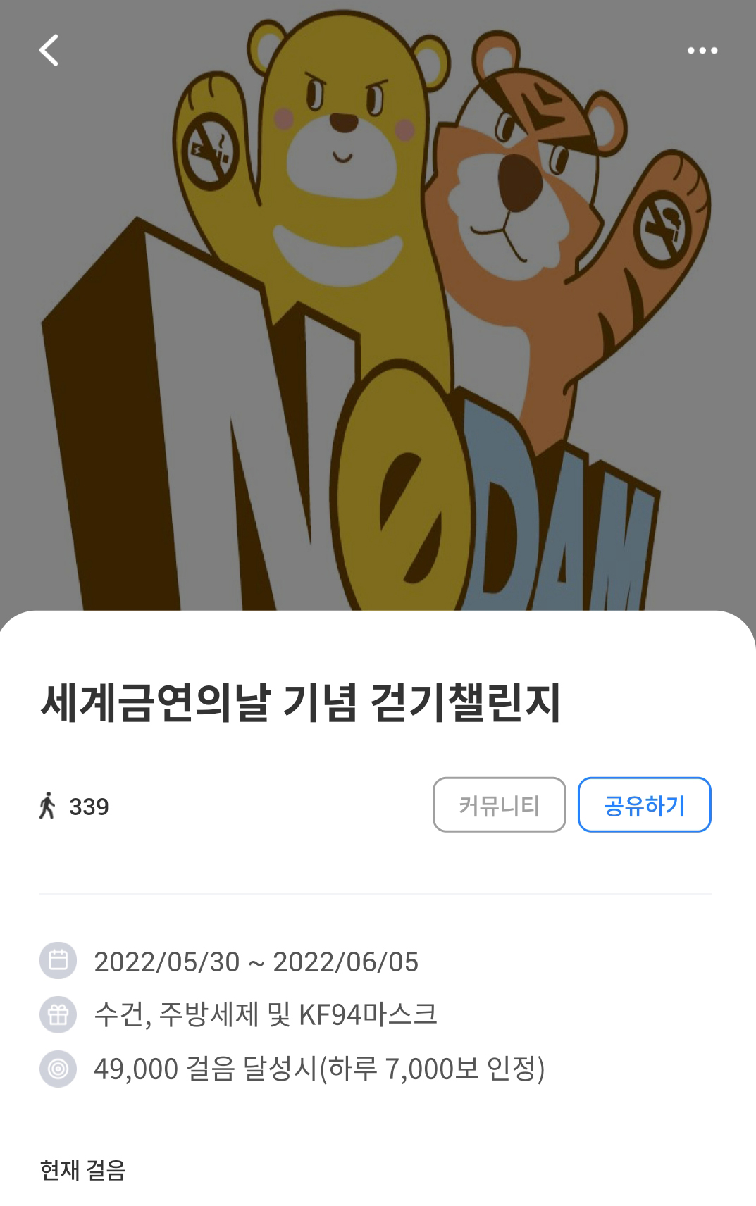 - 순창군보건의료원이 제35회 세계 금연의 날을 맞이해 워크온 걷기 챌린지와 연계하여 「노담(NO담배) 챌린지」를 운영하며 군민의 건강을 책임지고 있다. 워크온 걷기 챌린지는 군민들의 건강생활실천 및 생활 속 건강걷기 동기부여로 건강도 챙기고 건강걷기 활성화 분위기를 조성하기 위한 사업이다. 이번 챌린지는 5월 30일부터 6월 5일까지 7일간 비대면 방식으로 진행하고 있다. 참여희망자는 순창군민 누구나 개인 휴대폰에 워크온 앱을 설치하고 순창군 공식 커뮤니티에 가입한 후 챌린지 참여하기 버튼을 눌러 걷기에 참여하면 된다. 또한 7일 동안 4만 9,000보(1일 7,000보)를 달성할 시 앱을 통해 사은품 응모를 할 수 있으며 그 중 300명에게 소정의 성공사은품을 제공한다. 정영곤 보건의료원장은 “비대면 방식의 금연서비스 제공으로 지역사회 흡연율 감소를 이끌어 낼 수 있도록 많은 군민들의 관심과 참여를 바란다”고 말했다.