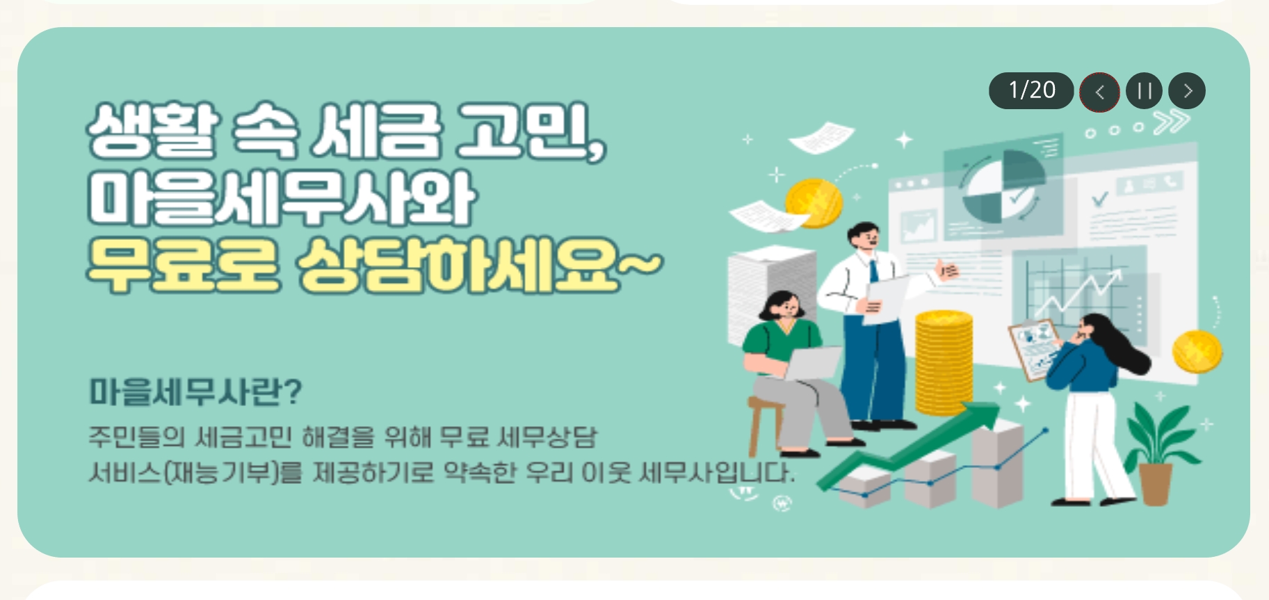 - 순창군이 각종 세금문제로 고민에 빠진 주민들의 어려움을 해결해주기 위해 올해도 ‘마을세무사 무료 상담제’를 운영한다. 특히 60세 이상 노인들의 인구가 많은 지역 특성상 최근 활용도가 높은 모바일이나 인터넷 등을 활용한 세무상담이 어렵다보니 인근 도시에서 활동하는 세무사의 직접 상담이 주민들에게 큰 호응을 받고 있다. 현재 순창군은 2명의 마을세무사가 활동하고 있으며 세무지식이 부족한 주민들의 지방세 및 국세 관련 신고서나 신청서 작성을 지원하고 3백만원이하의 지방세 불복청구도 지원해 실질적인 도움을 주고 있다. 순창군 마을세무사는 박헌명 세무사 (☎063-625-2219), 구태희 세무사 (☎063-632-0990)이며, 마을세무사 관련 궁금한 내용은 각 읍·면 행정복지센터나 군청 재무과(☎063-650-1347)에 문의하면 안내를 받을 수 있다. 군 관계자는 “세금문제로 고충을 겪고 있는 주민들의 어려움을 해결해주는 마을 세무사에게 깊은 감사를 드린다.”면서 “앞으로도 군민들에게 실질적인 도움을 줄 수 있도록 다양한 지원정책을 펴나가겠다.”고 밝혔다.